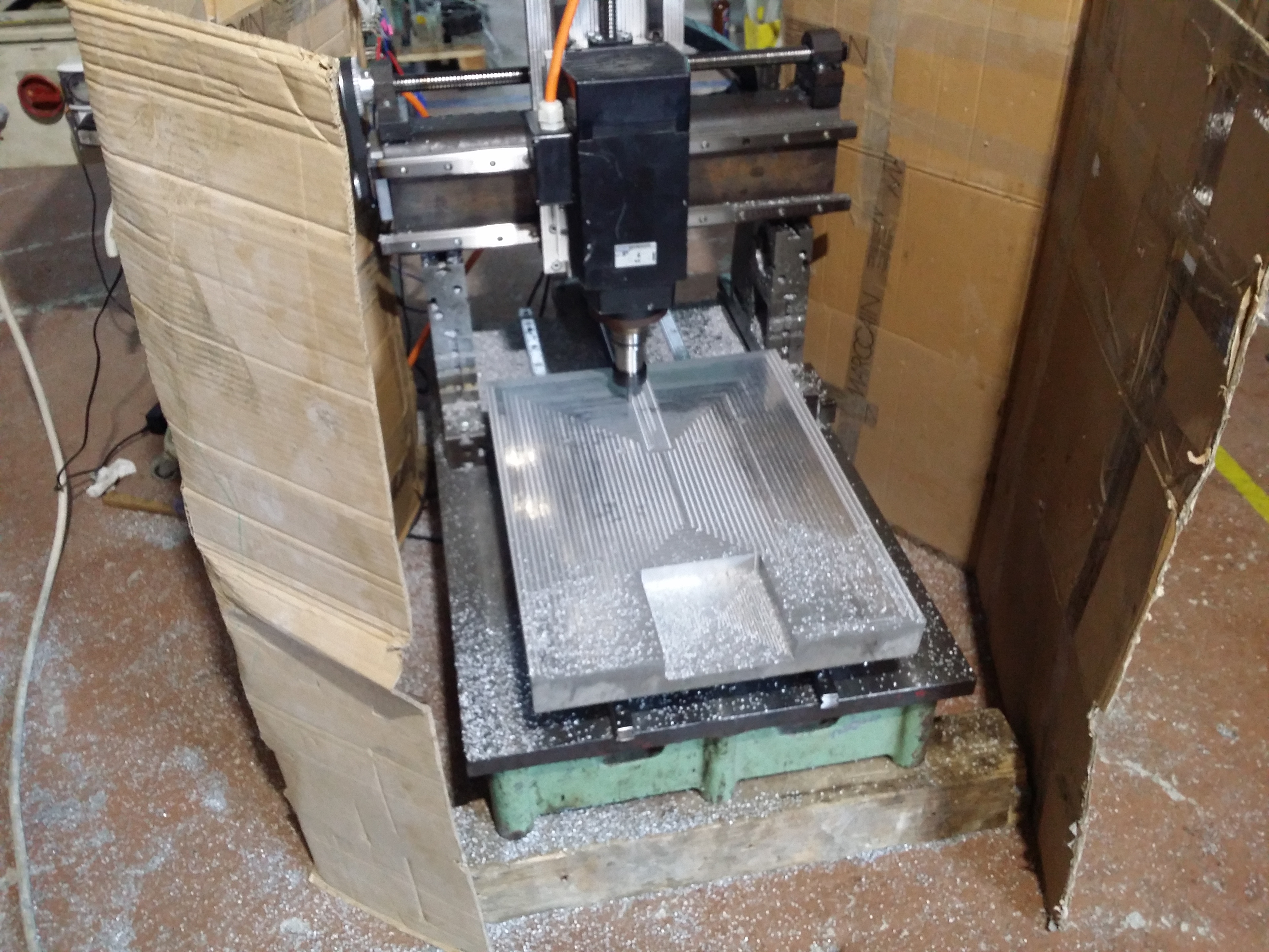 На этой неделе запустили очередной станок. Стол делал сам для себя (делали временное крепление, а потом просто перевернули и выровняли). Собрали почти с хлама. Только кое-какие комплектующие новые.