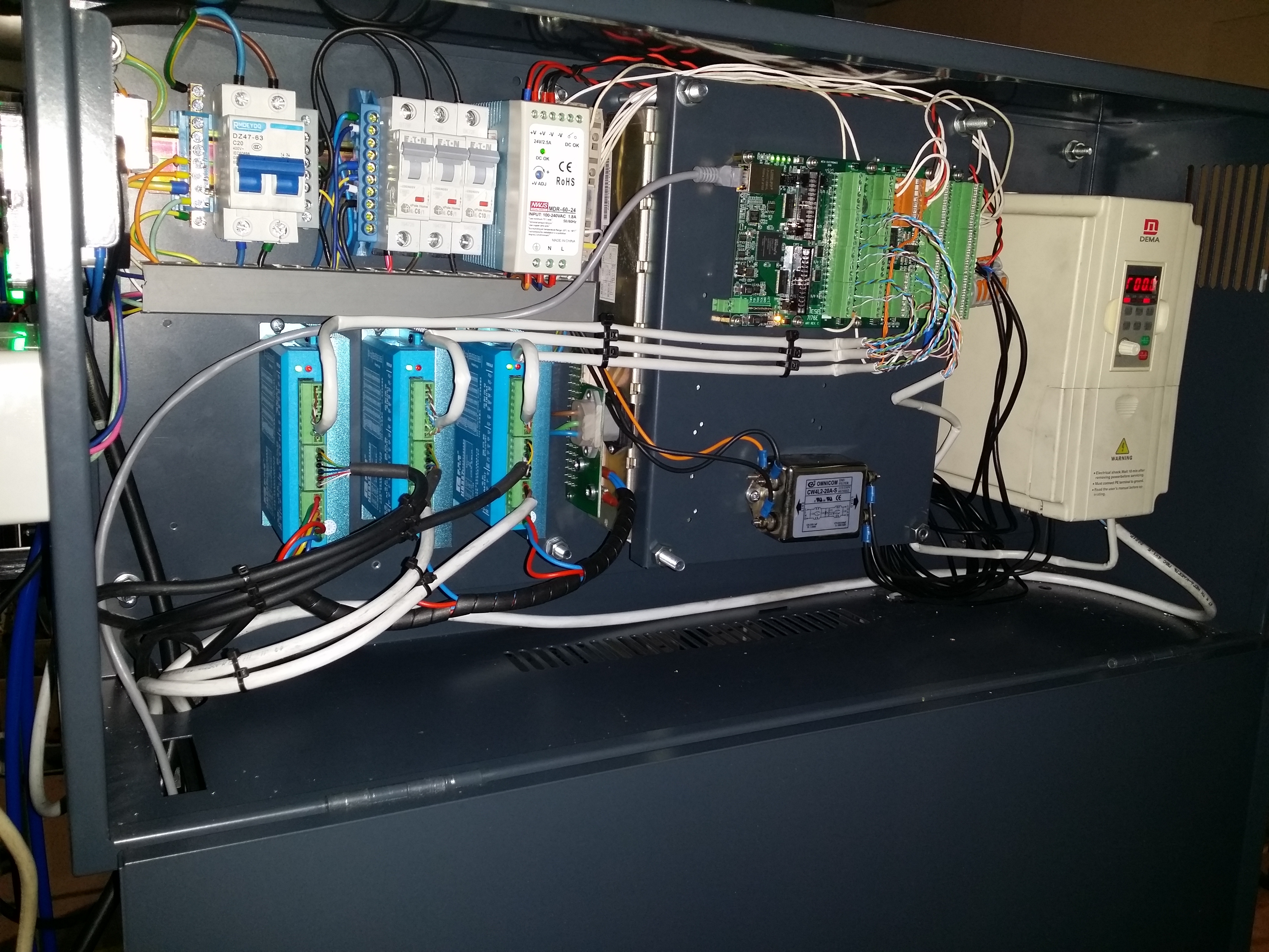 Установили MESA 7i76е карту, пару дополнительных реле и чутка провода подсобрал, ну и все силовые провода заменил, а то парочка из них 1.0 мм2 были.