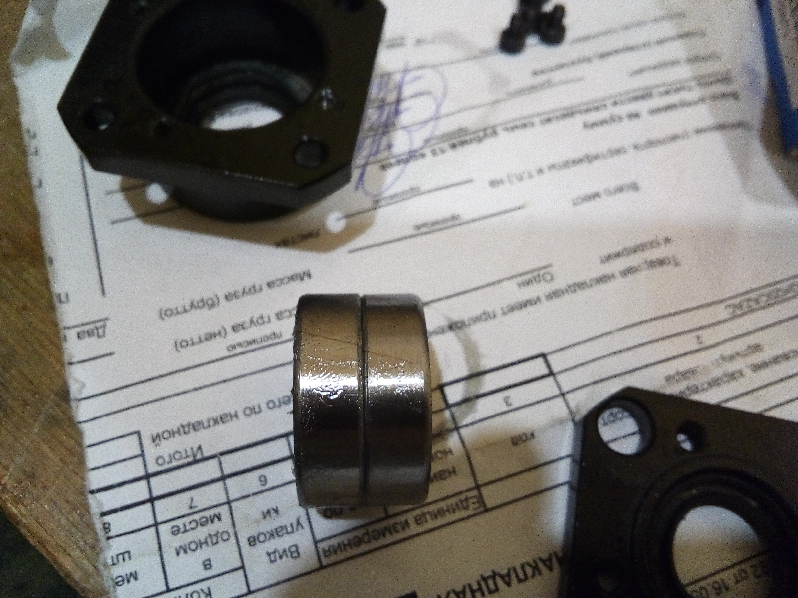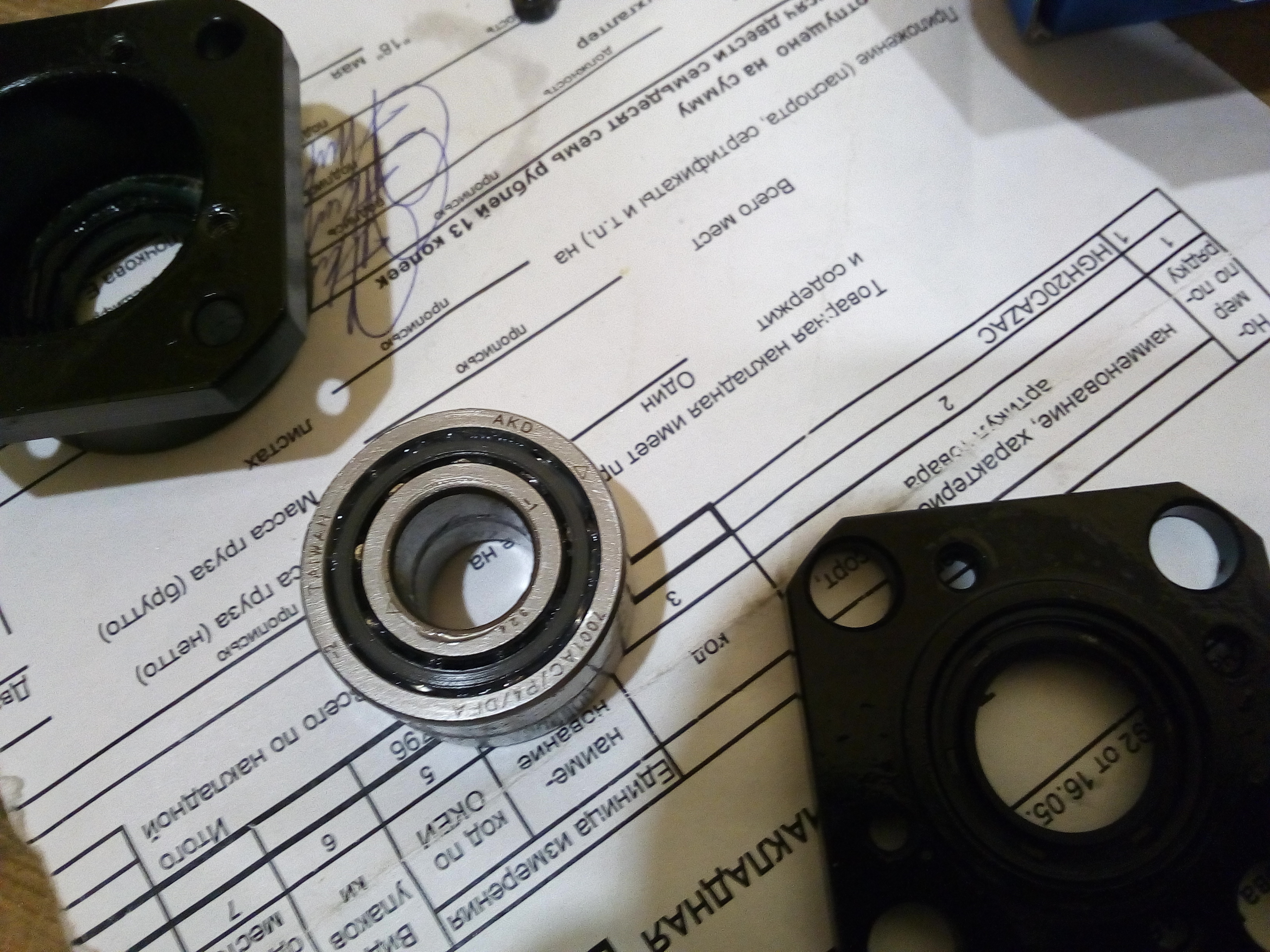 получил от Славы новые опоры ШВП AKD C5. Первым делом разобрал их и посмотрел, какие подшипники в них установлены.