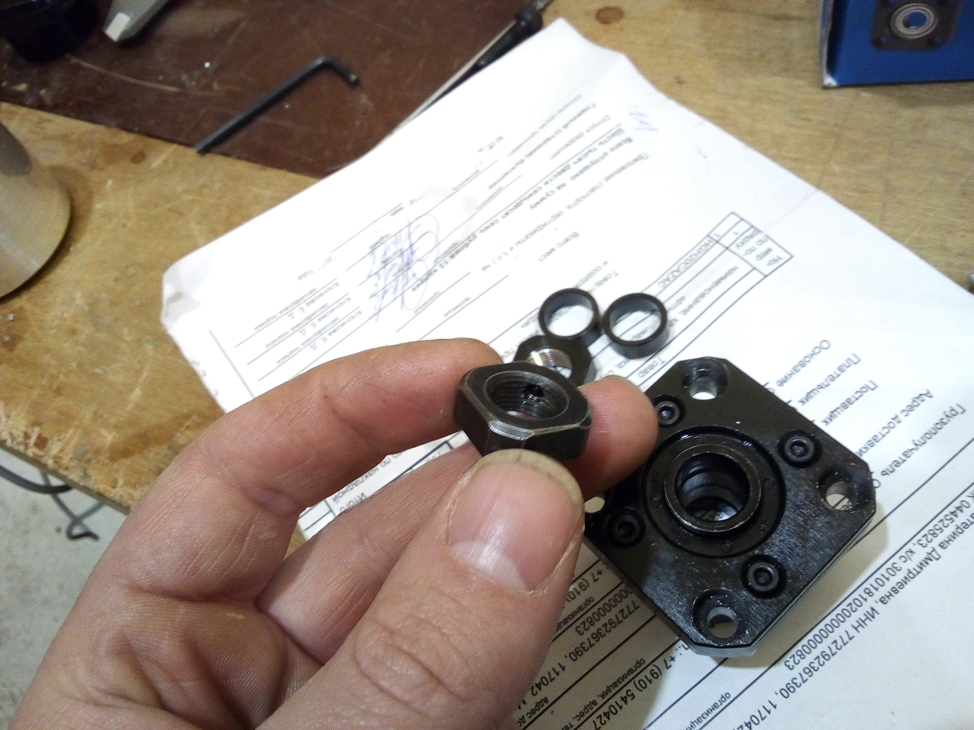 У AKD же во первых бонок две, а во вторых со стороны резьбы отверстия в гайке заботливо прикрыты бронзовыми или латунными втулочками, т.е. тайваньцы позаботились сохранности резьбы нашего винта))