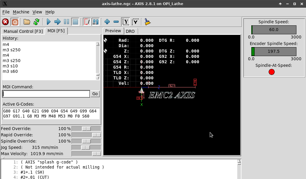 Нажал обратный ход -М4 и показывает вместо 250 (100-400 разброса) оборотов 25... (17-27)