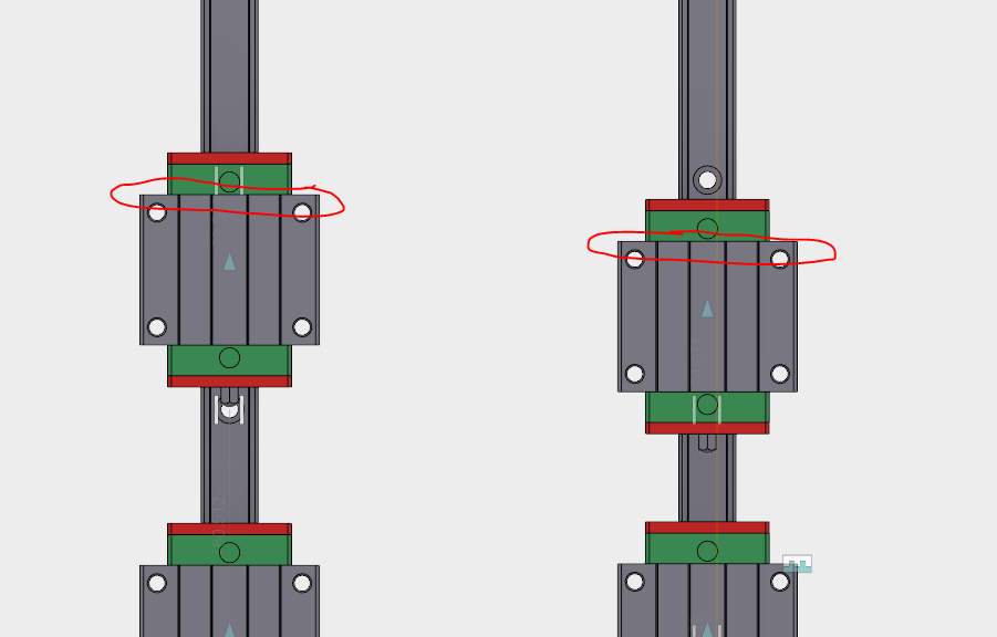 В текущий момент у меня зависимость настроена так, что каретки ползают по рельсу. И при смещении рельса, они смещаются вместе с рельсом.