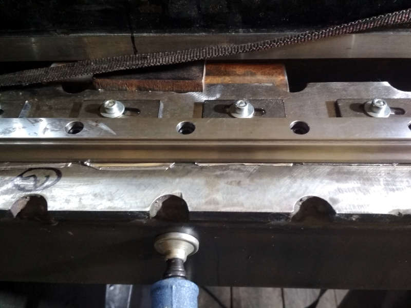 Естественно, потребуется точная установка этих модулей на станине, но это, как мне кажется, на порядок проще, чем шлифовать непосредственно под рельс в двух плоскостях.