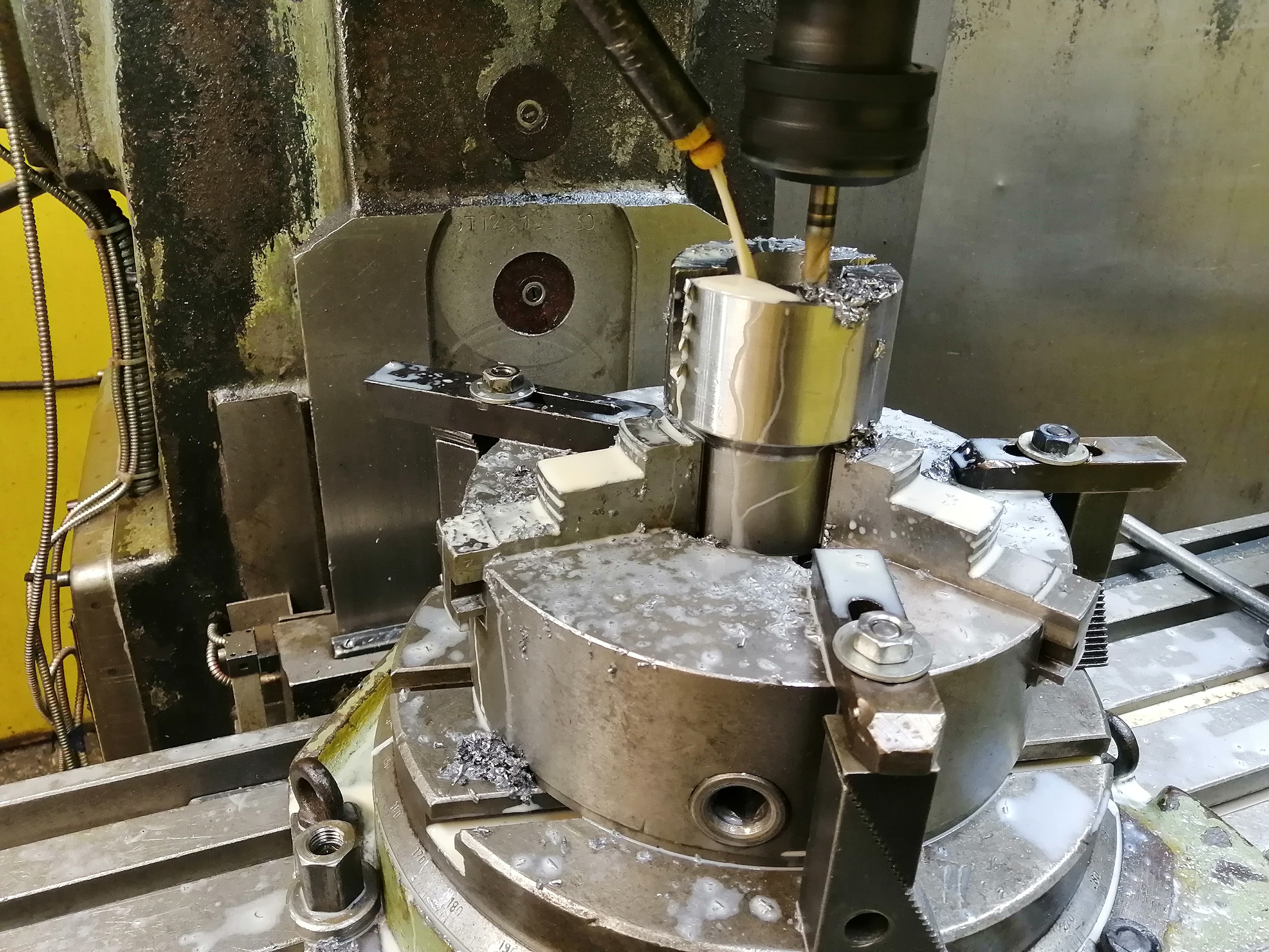 Если бы я делал эти муфты на "Тошибе", то я бы уложился с ними в один рабочий день, так как нормально драть сталь с дикими сьемами на фрезерах на которых я работал просто не получается. Поворотный стол просто не вывозит больших сьемов. Там делов то, поставить кукурузку Ф40-50мм и сьемом 40мм за проход выгрызть паз, полчаса и половинка муфты готова учитывая время на установку детали. Или тут 2 часа шмурыгать мелкими фрезами.