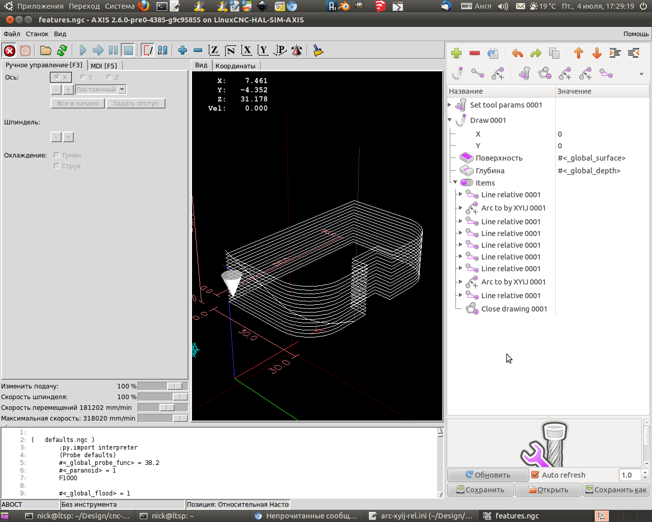 Обсуждение установки, настройки и использования LinuxCNC. Вопросы по Gкоду.