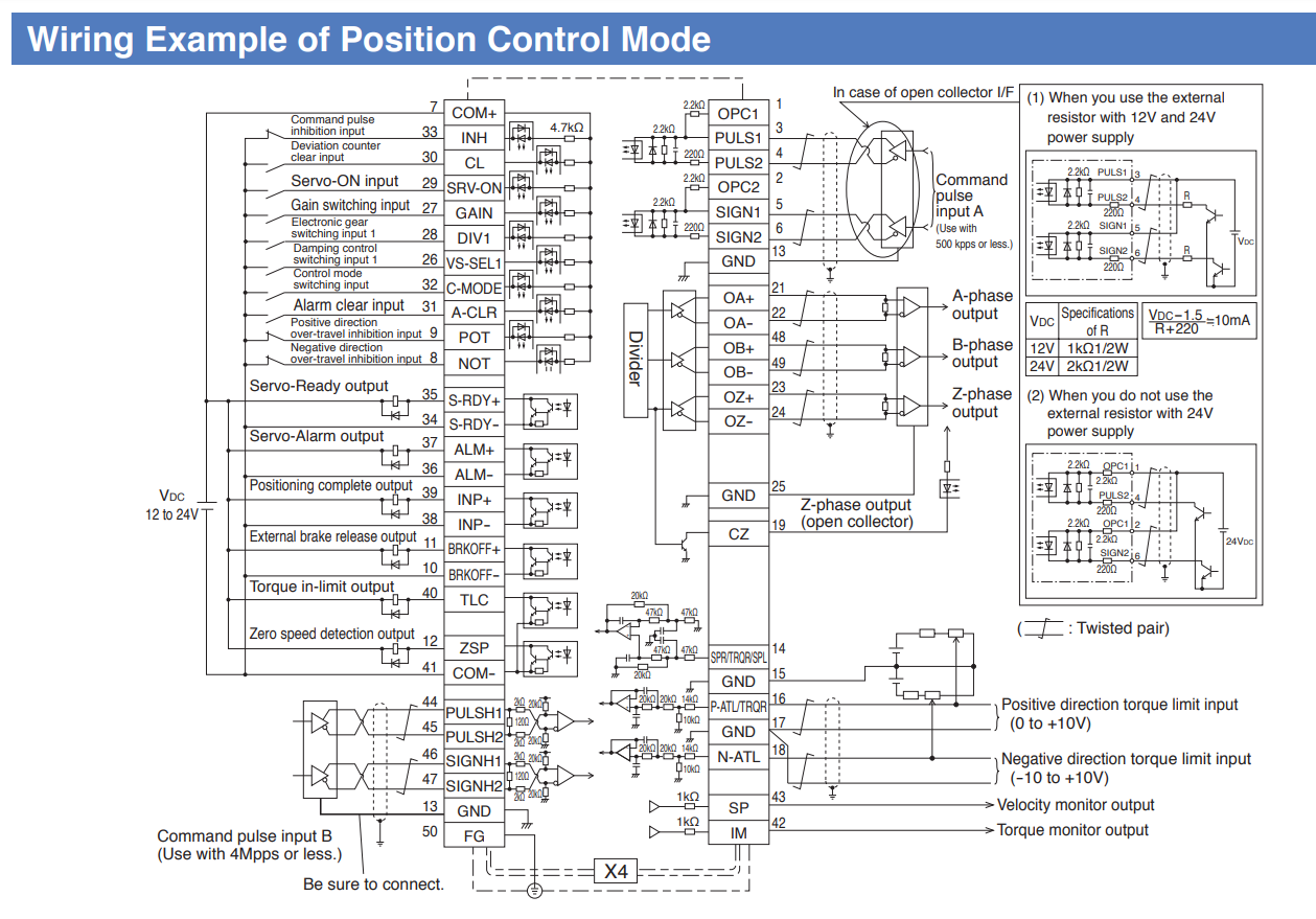 Подключил по схеме ниже (взято из схемы обычного шаговика с энкодером) + ко всему залез в настройки сервы и перепроверил параметр P0.07 - там почему то было выбрано 1. Установил 3, выключил/включил серву. Проверяю. Опять 1. И тут я понимаю что настройки не сохраняются. Залез в мануал на серву и понимаю что я балбес))) Оказывается нужно записывать настройки в Eeprom чтобы они вступили в силу.