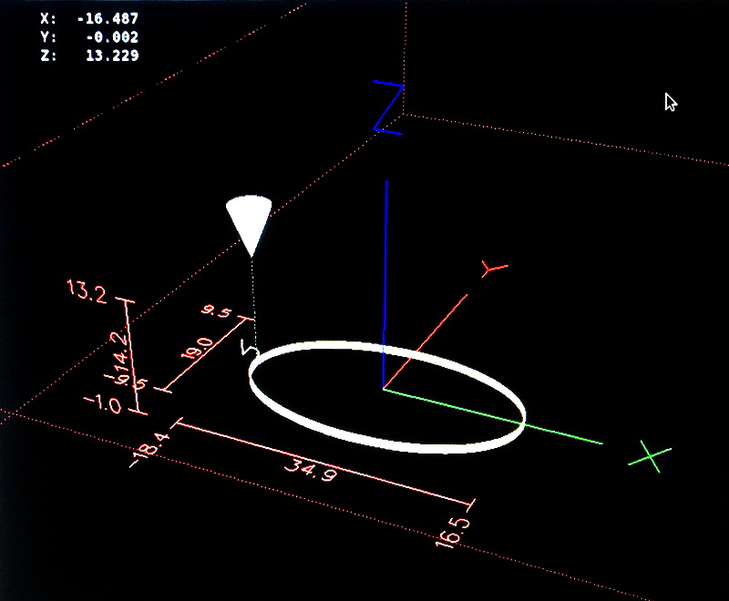 Итак, вот упомянутая траектория (фреза движется по эллипсу, плавно заглубляясь в материал с постоянной скоростью))
