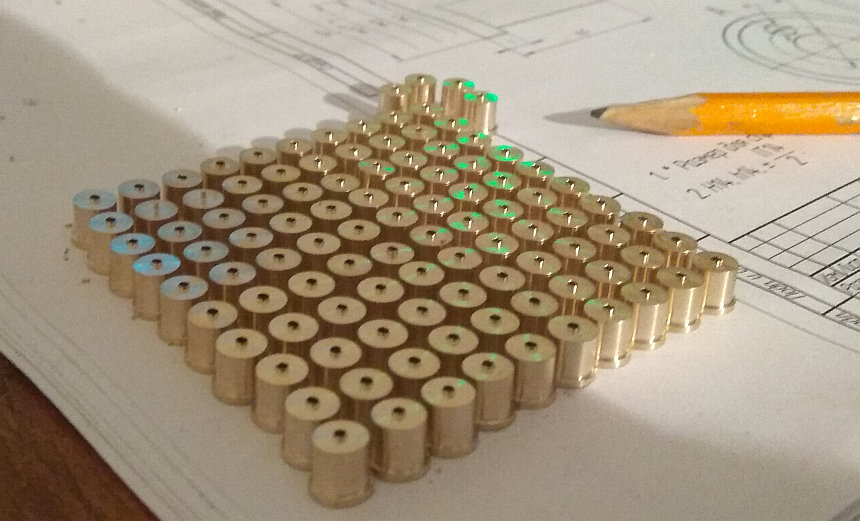 хотя это тоже та еще задачка когда крутишься у станка. Детальку длиной 6 и диаметром 5мм - просто даже пальцами не особо удобно брать. а уж составить аккуратно плотно друг к другу, когда зазоры меньше пальцев....