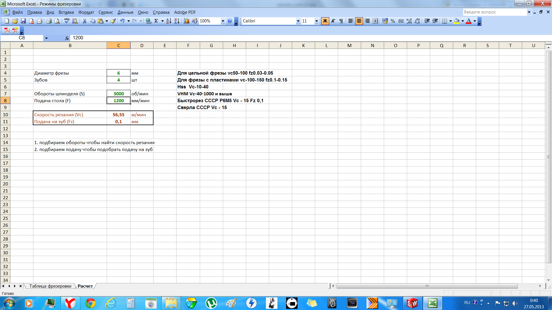 aftaev писал(а):правильно. Подача на зуб в норме. Если скорость резание уменьшить то жить фреза будет дольше.