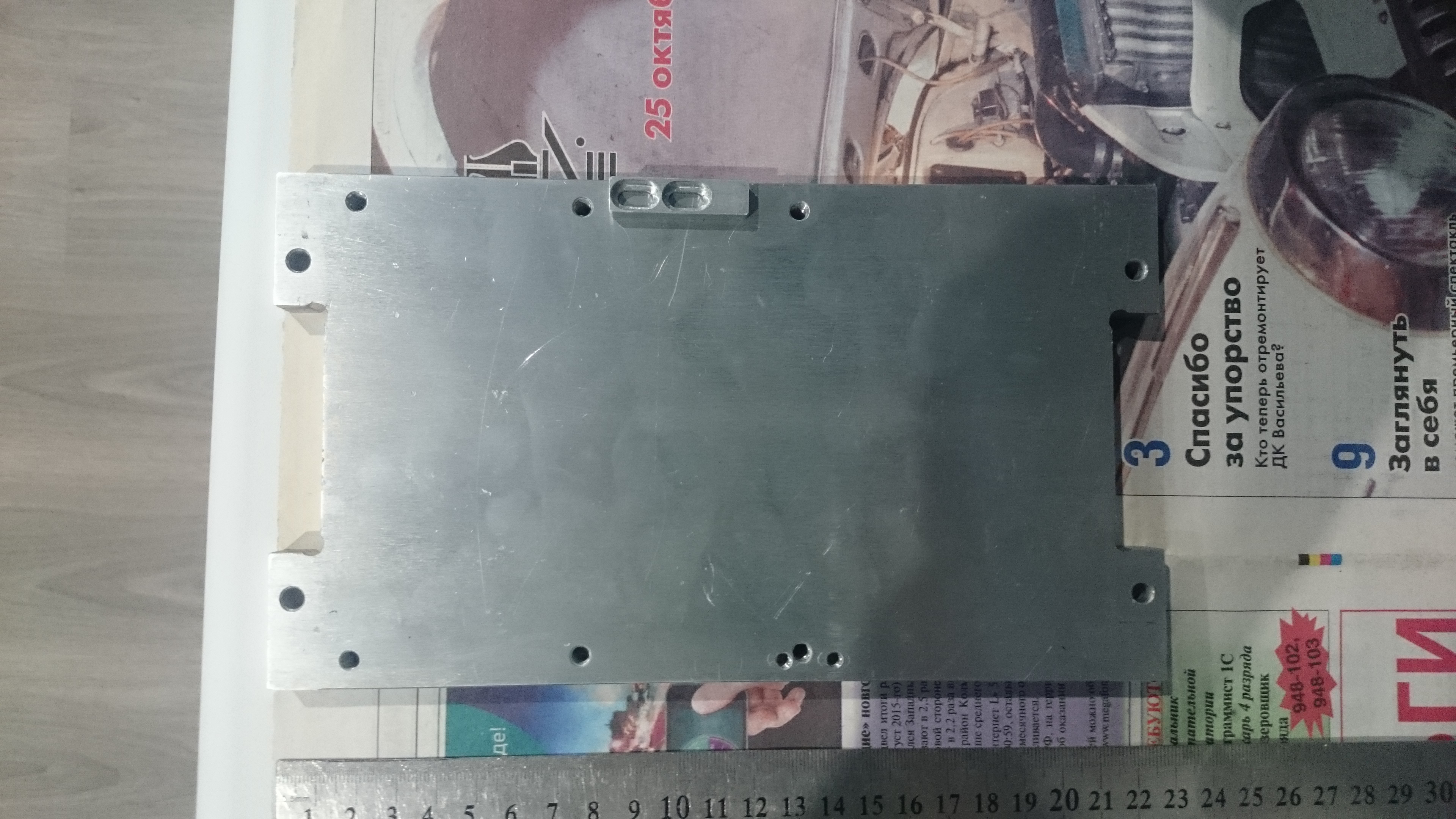 Не знаю, понятно ли будет по фотографиям или нет, но смысл в том что на пластине отверстия под метку индуктивного датчика и под гибкий кабельканал распологаются с одной стороны, а на ответных деталях соответственно с разных. На второй фотографии расположил метку там где по моему мнению метка должна быть закреплена.