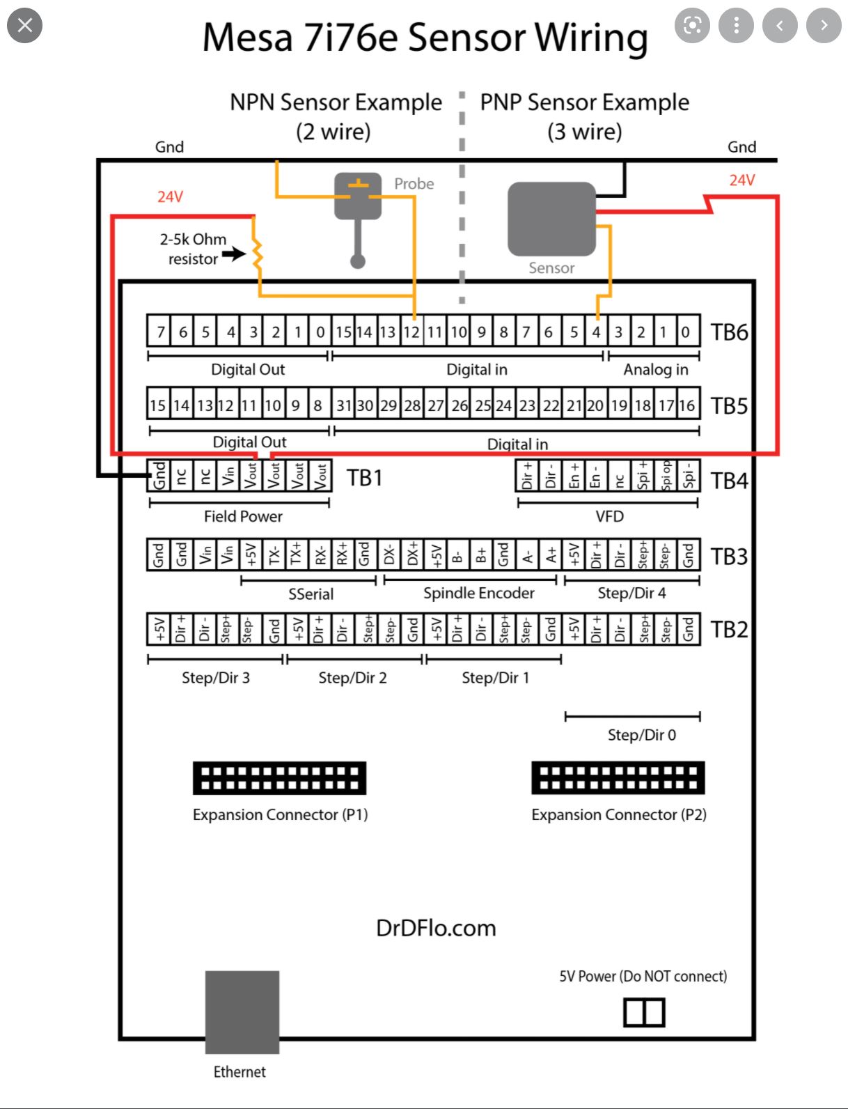 Датчики с NPN выходами для MESA 7i76E не рекомендуются, но их подключение к "sinking" входу допускается с использованием подтягивающего резистора с определенным номиналом, с другими номиналами сигнал может не считываться