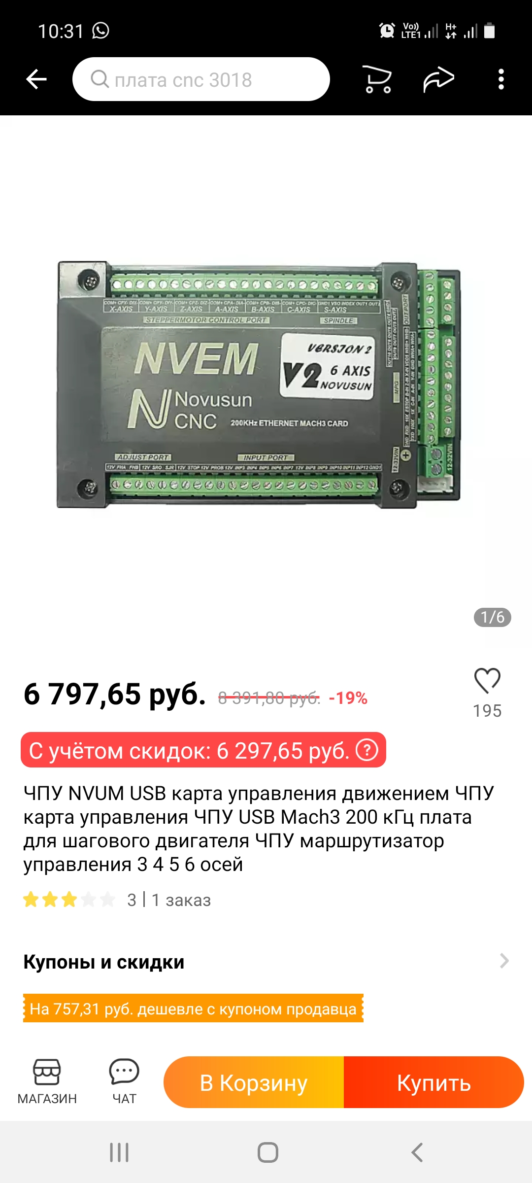 Здравствуйте, уважаемые участники данного форума. Прошу вашего совета в решении проблемы, с настройкой ЧПУ фрезера. Станок самодельный из профильной трубы 100х100х6мм, рабочее поле приблизительно по Х=1200мм, по У=1500мм(ось А - подчинённая), ось Z=190мм, есть поворотка на оси В. Управляющая программа Mach3(китайская), плата коммутации зелёная дешманская на 5осей(название хз его знает)с LPT управлением. Есть выносной пульт управления по USB. Шпиндель с водянным охлаждением 2,2кВт и соответственно инвертор на 2,2кВт. Рельсы HGW=20, ШВП=1605, движки гибридные NEMA 34 (86ые)112Nm , драйвера гибридные типа пародии на Ледшайн, на каждый отдельно БП 60V ~7-8А(4шт), на поворотку соответственно тоже всё отдельно. Вроде как мог описал параметры электроники, механики.....Не пинайте, если что забыл. А теперь суть дела, вся эта китайщина работает и передвигается по осям, даже поворотка от клавы крутит вертит. Mach3 так и не смог подружить с инвертором, но кое как инвертор со шпинделем сдружил, пока руками включаю не программно. Короче, решил проверить насколько точно проходит каждая ось по введённым цифрам по траектории программно в Mach3, через автонастройку . При вводе любой цифры(к примеру, даю команду проехать 100мм) и нажатии ОК, станок резко дёргается по всем осям на миллиметров 5 и драйвера(4шт) улетают в ошибку, дружно моргая своими красными "глазками". Перелопатил кучу инфы по настройке Mach3, уже по мануалу на русском пошагово настраивал всё.....Не хочет автокоррекцию пройти, хотя от клавы или с пульта свободно выполняет все команды.....Если не в тему написал, ткните пожалуйста носом в ссылку, чтобы не забивать светлые головы своими "детскими вопросами", понимаю, что миллиард первый это уже вопрос со стороны молодой зелени в этом деле.....Заранее, большое спасибо за любую инфу, месяц уже танцую с бубнами вокруг, пол леса сжёг, но "самодельный китаец" не хочет становится россиянином!.....)))))