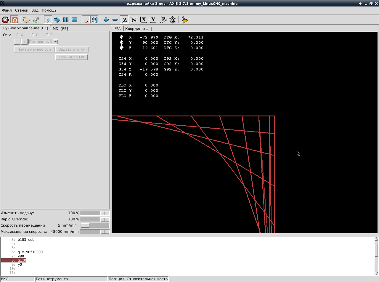 настройки скопировал на другие оси но еще не подправлял сервы жужжат линукс показывает отклонение в пределах инкремента