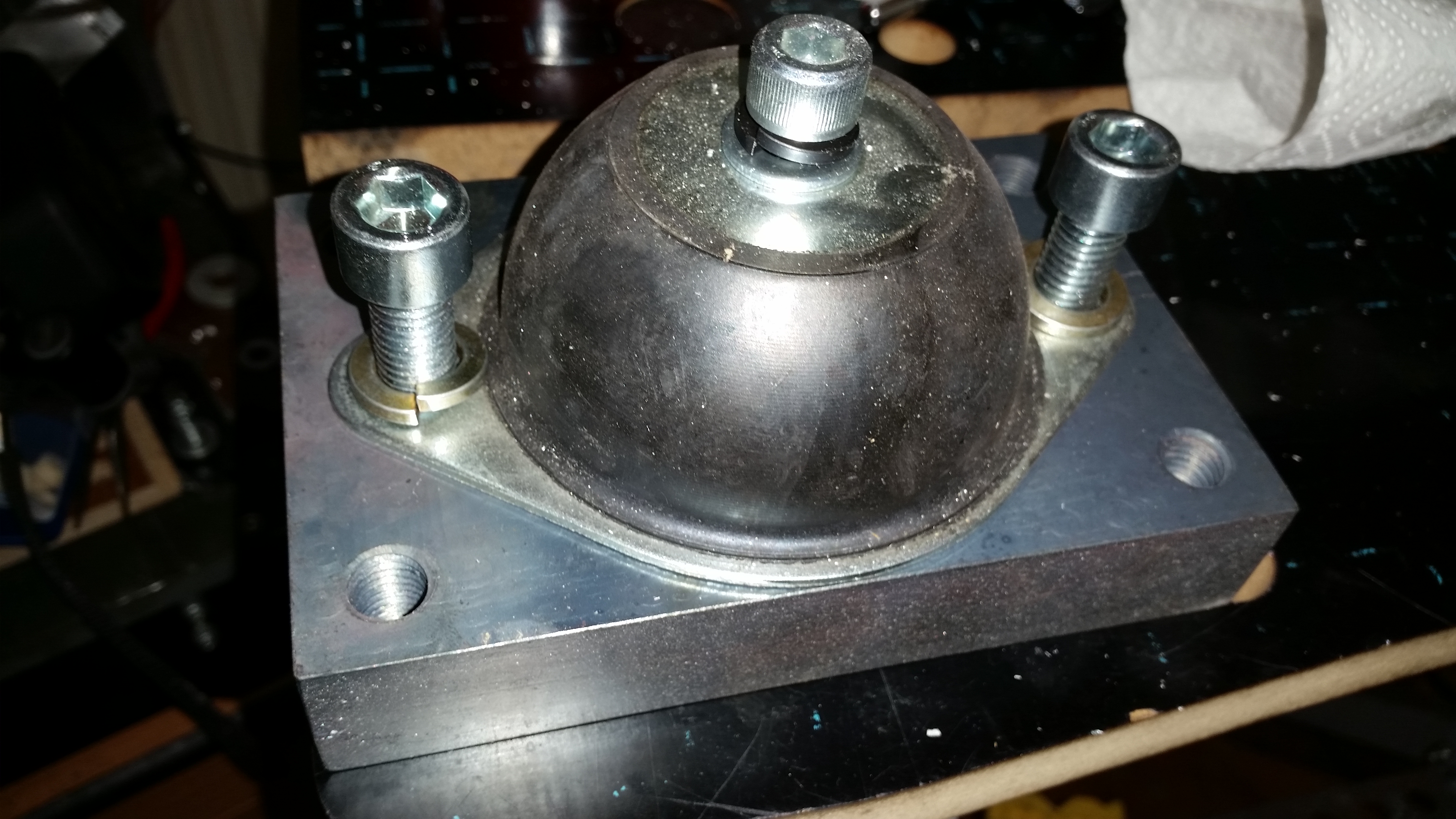 У меня очередное воспаление. И так. Станок должен стоять на сварной станине. Она не очень точна. 1-2мм все-таки плывет. Я задумал станок установить вот на такие детали. В них М12 отверстия по-углам - это крепление их к станине, рядом 4 отверстия М8 для болтов юстировки, которые отжимают деталь от станины и фиксируются контр-гайкой. По-центру крепление виброопоры станка.