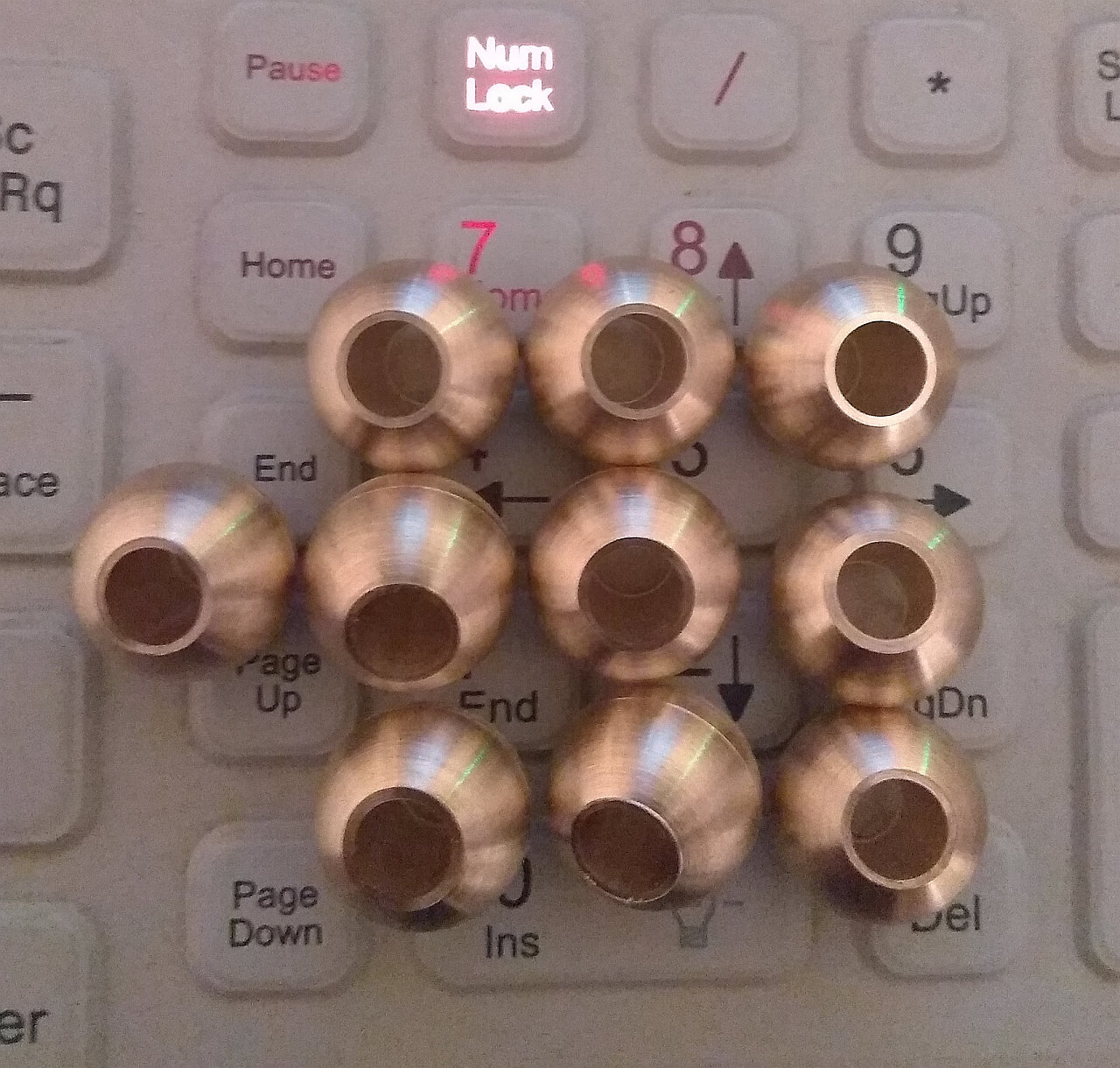 так то конечно - если в серию пойдет - куплю на отрезной радиусную пластину да пропишу чистовым всю сферу обойти. а счас - это пробные 10 штук - проще было не заморачиваться. Вышкуривается быстро - буквально там 5-7 секунд. он этот переходик реально небольшой. это больше игра света его таким делает.. А по поверхности - если с латунью работаешь - могу показать что мне реально нравится по ней. очень чистую и хорошую поверхность дают.