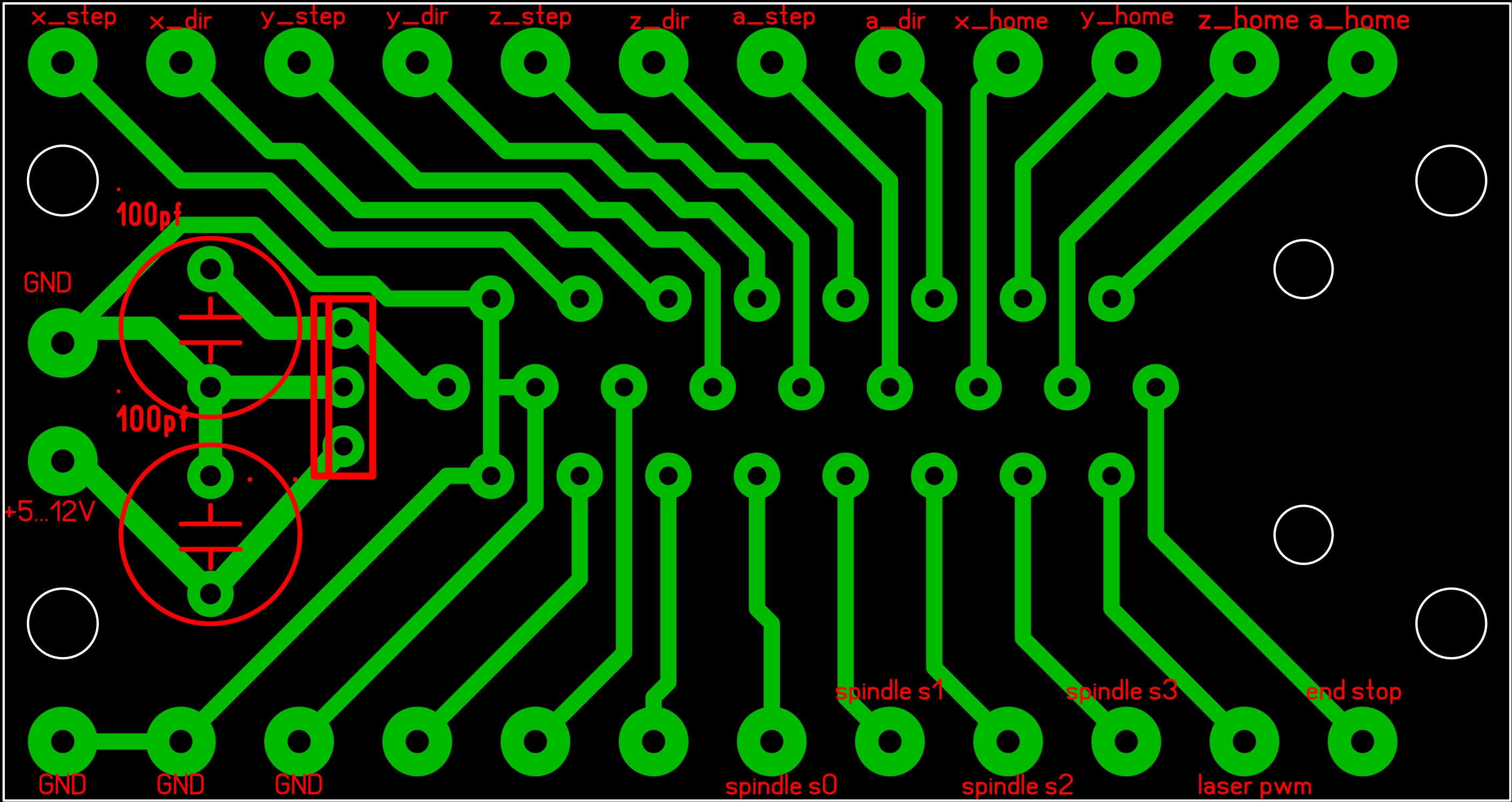 Сегодня сделал распред. плату к которой будет подключен кабель с контроллера на 3 оси. Сделал потому что нет разьемов и купить в городе тоже негде, а заказывать.... Да и вообще если разобраться зачем разьем этот нужен, отключать и подключать больше не к чему. Решил взять кабель (25 жил) от старых принтеров lpt, впаять его и усё. На схему кинул линейный стабилизатор L7805 для питания контроллера, чтобы питать от одного блока питания . Возможно кому то будет полезным. Все файлы оставлю под споллером.
