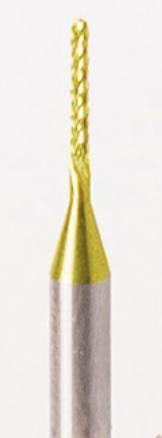 Фрезой кукуруза, брал для вырезания печатной платы, резу плату с шагом 0.3 на скорости 1мм/сек. Вроде режет.