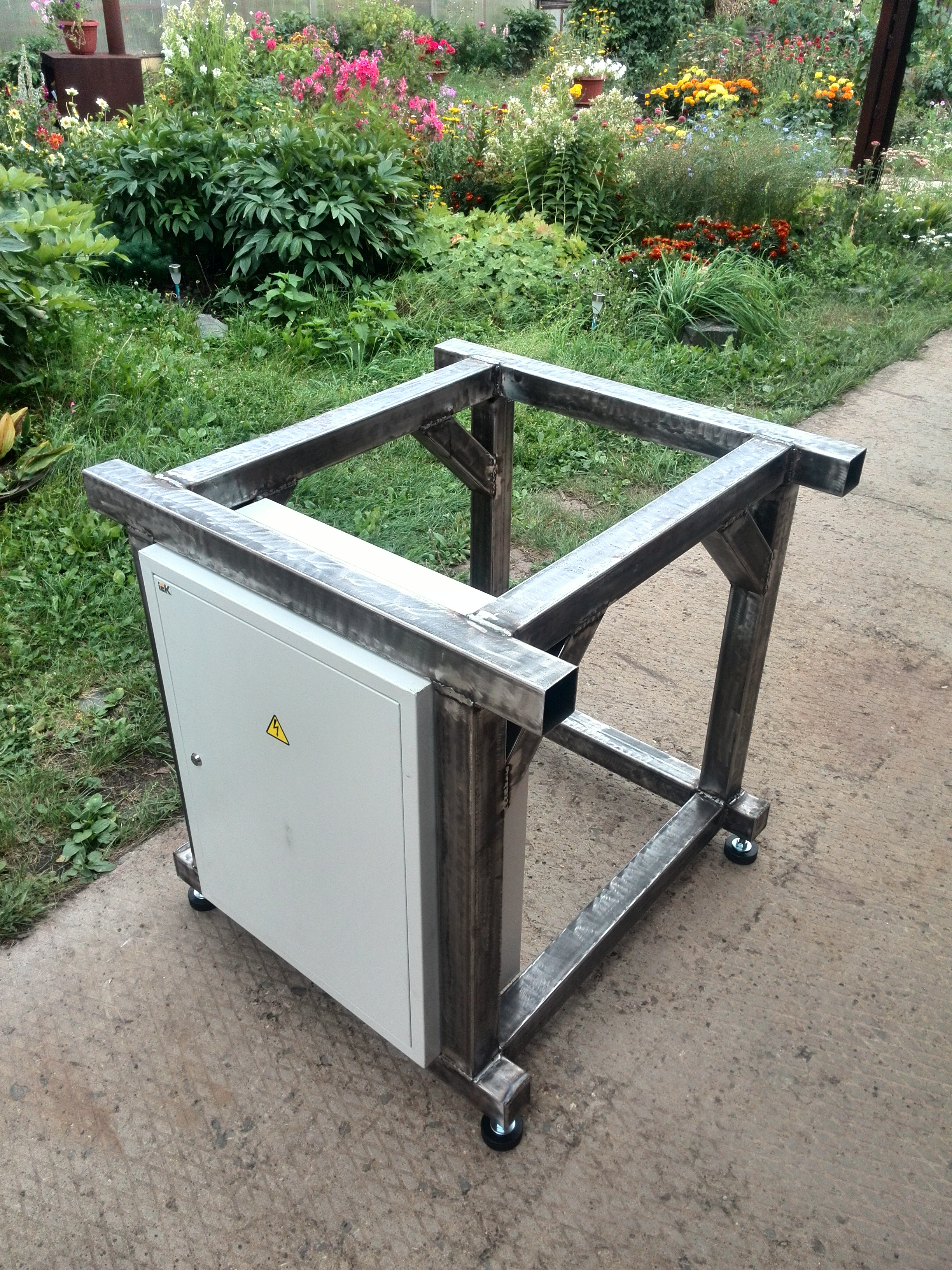 Понемногу двигаюсь к своей цели. Сделал опоры из хоккейных шайб, вварил укосины, примерил плиту.