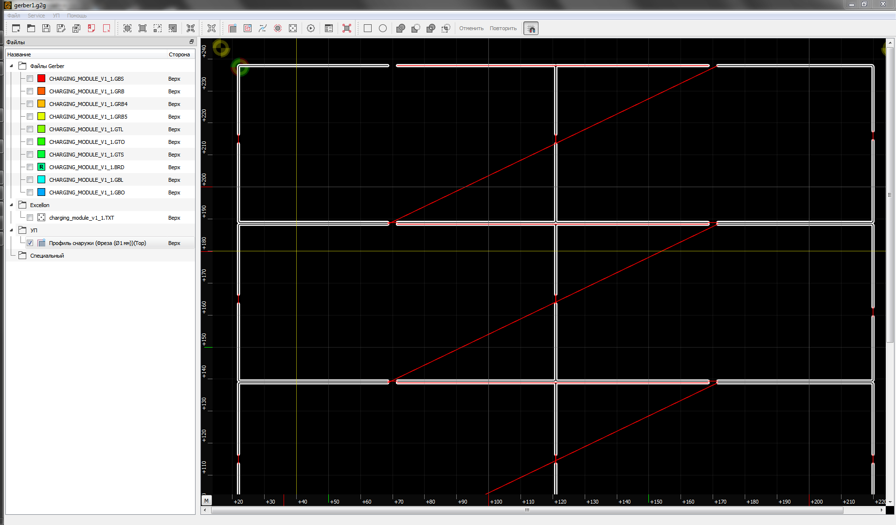 Можно просто линиями плату рассечь и от фрезеровать поверху. Перезалил. Можете попробовать снова.