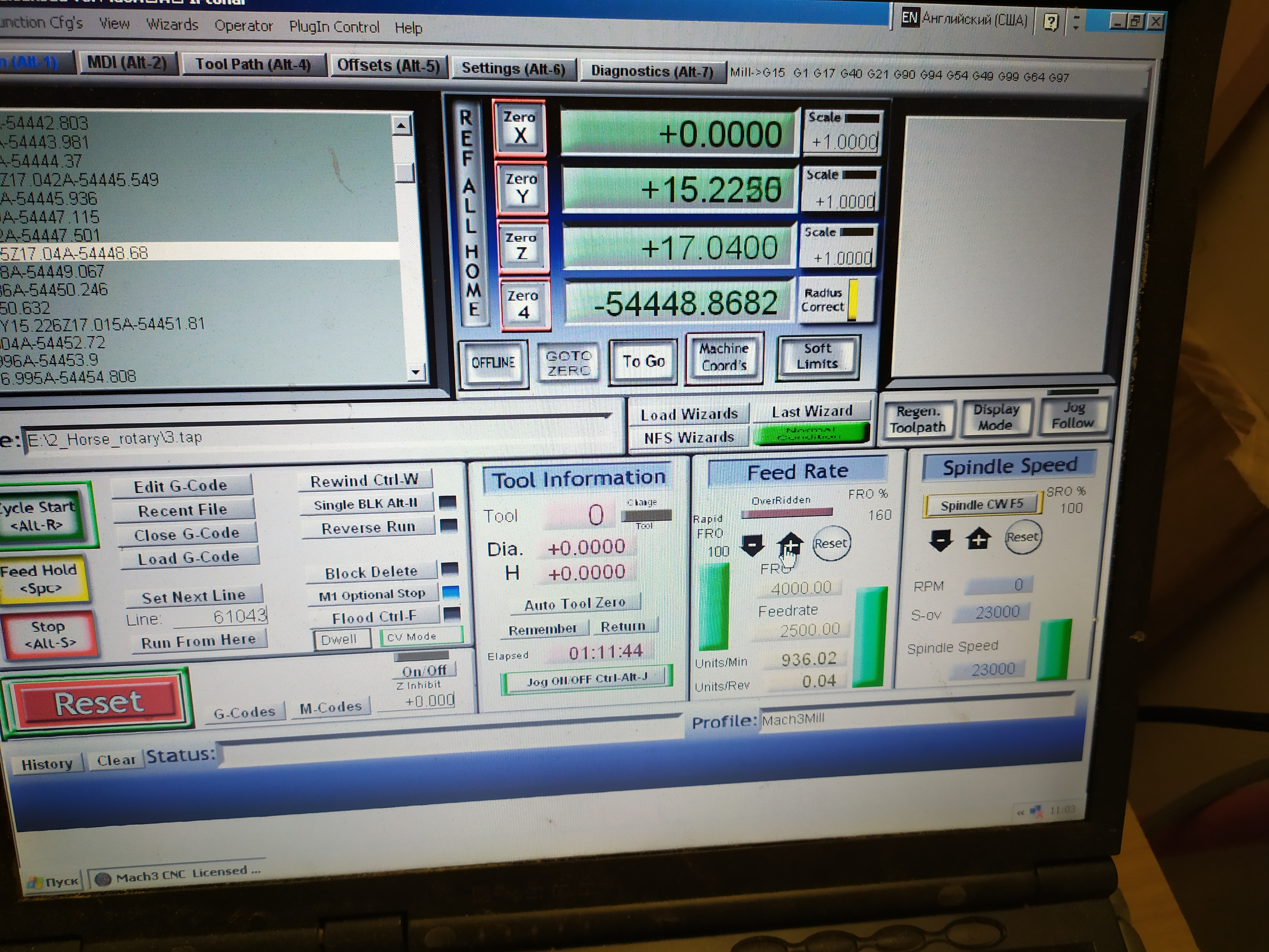 За час обработали всего 20мм, а заготовка всего 86мм, со есть ещё три часа будет работать.