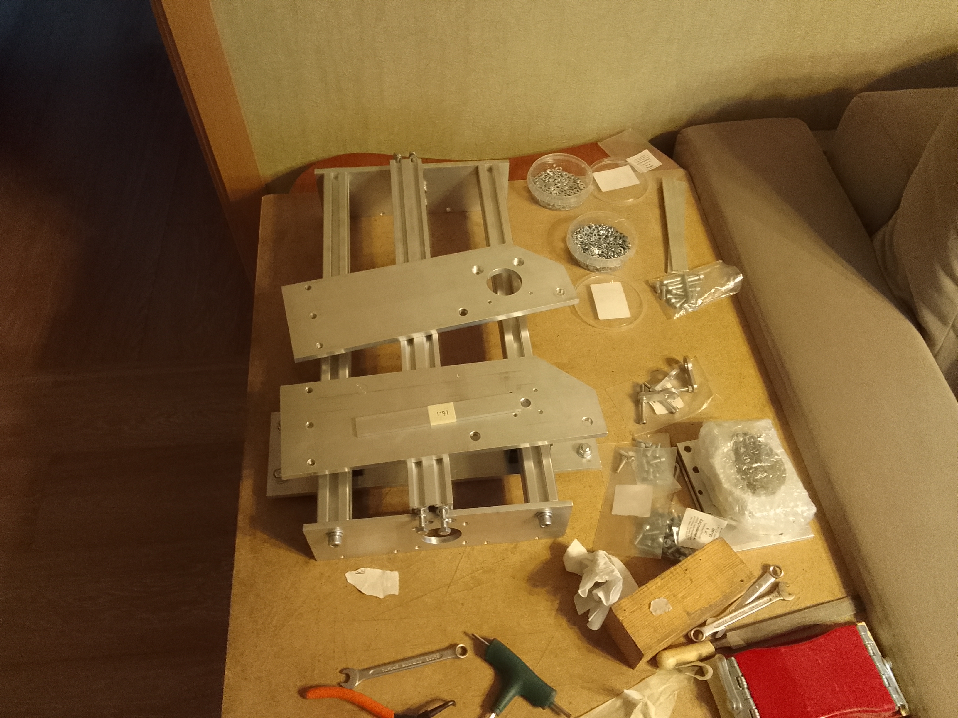 Вот и очередной КИТенок случился с установленными ШД типа НЕМА23, осталось только фанерный столик поставить. Размер рабочей зоны поменьше - фактически 260х330мм, по-бытовому 250х300мм. Станок сделан покрепче, оси Х и У на 20-х рельсах, специально для уверенной обработки и непрочных металлов, типа алюминий. В общем смотрите фото!