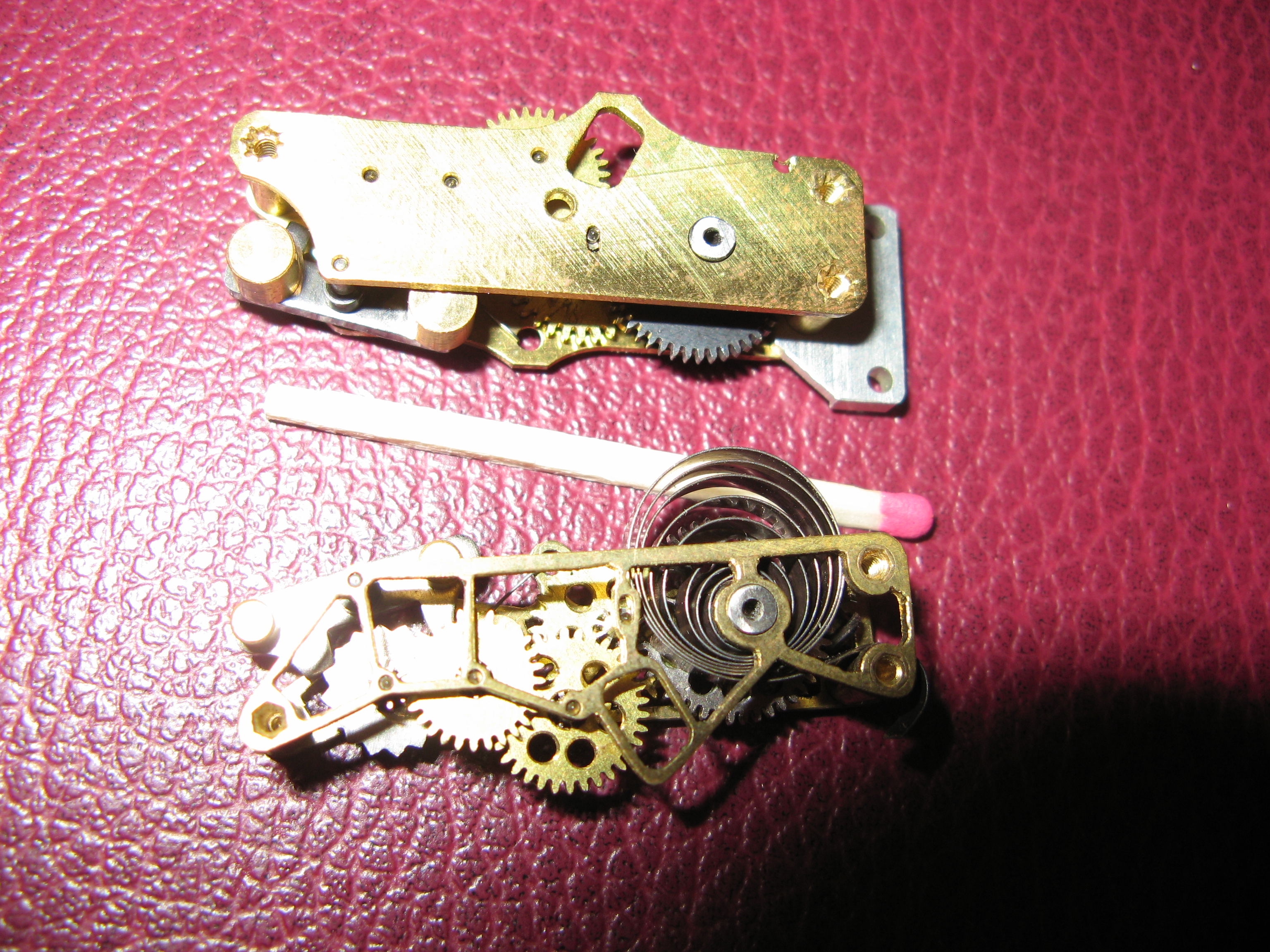 полез в ящик, достал коробочку с недоделанными бобышками, вручную облегченным таймером (рядом лежит обычно облегченный планерный вариант. он перелицован если кому интересно). пилил лобзиком, допиливал надфилем. шестеренки сверлил для облегчения где это можно было сделать... еще нашел свой раберхолдер, но с трубочкой. основная идея чтобы накручивать мотор отдельно от модели а потом вставлять. так вот на трубочке все держится пока накручивается