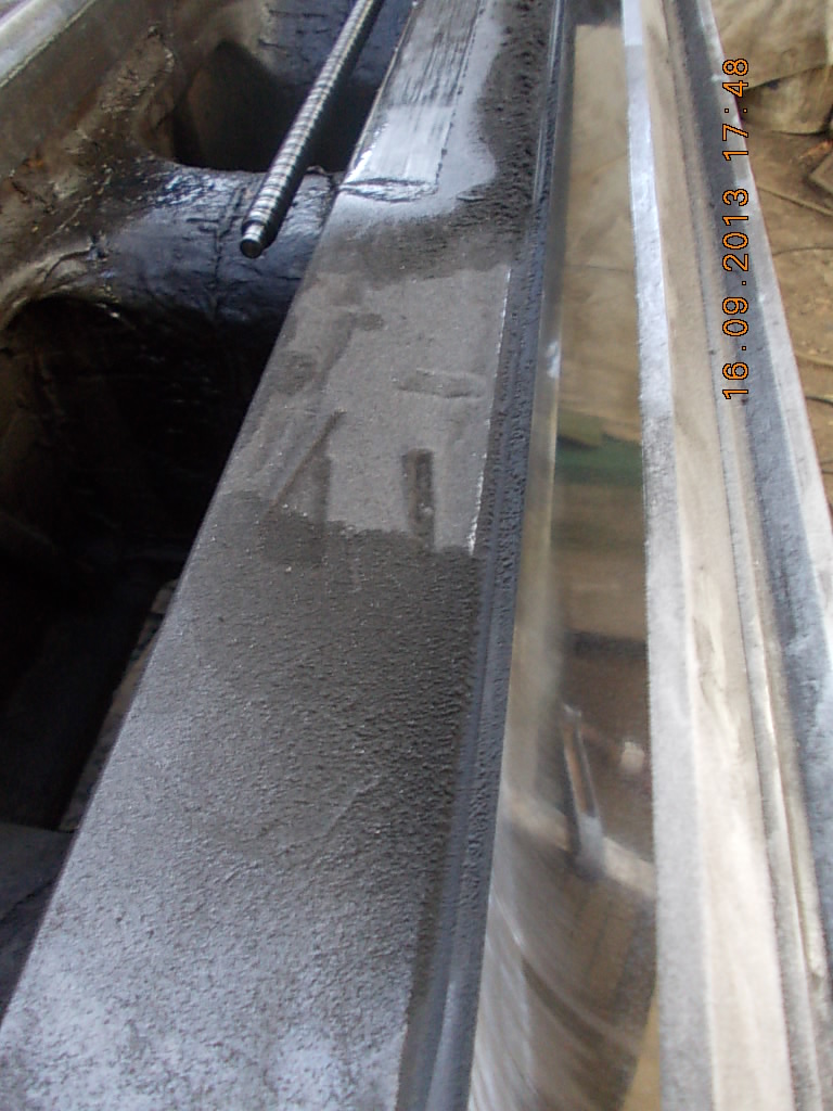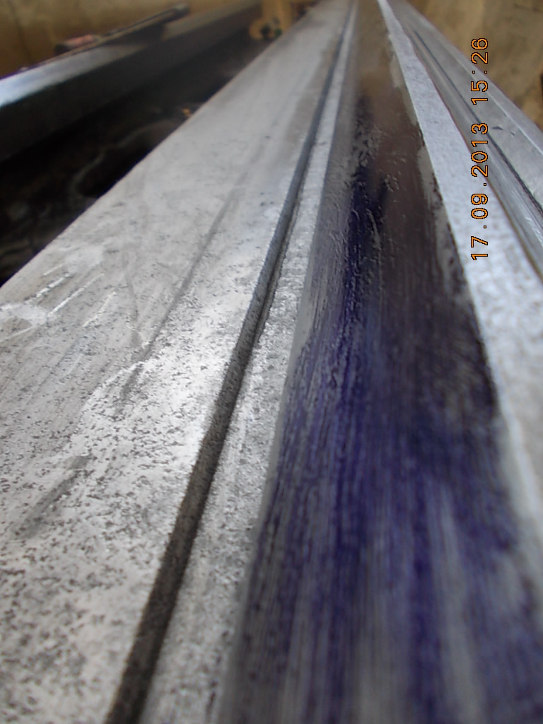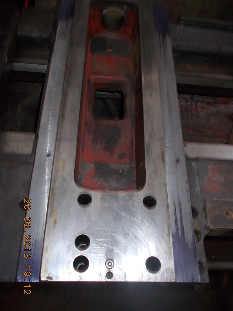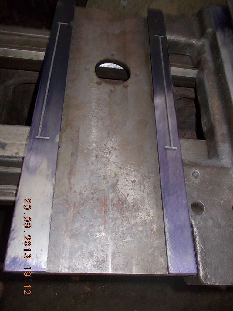 Это после фрезеровки (сняли 1.5мм). Краска только по краям. Видать притянули к столу сильно, когда отпустили суппорт выгнулся. Будем шабрить, на это и рсчитывали. Это после шлифовки Подкладываем пластинки так чтобы клин не торчал из ластохвостов. Так подбираем толщину Zedex. Получилось 2мм. В этом станке направляющие не каленые!