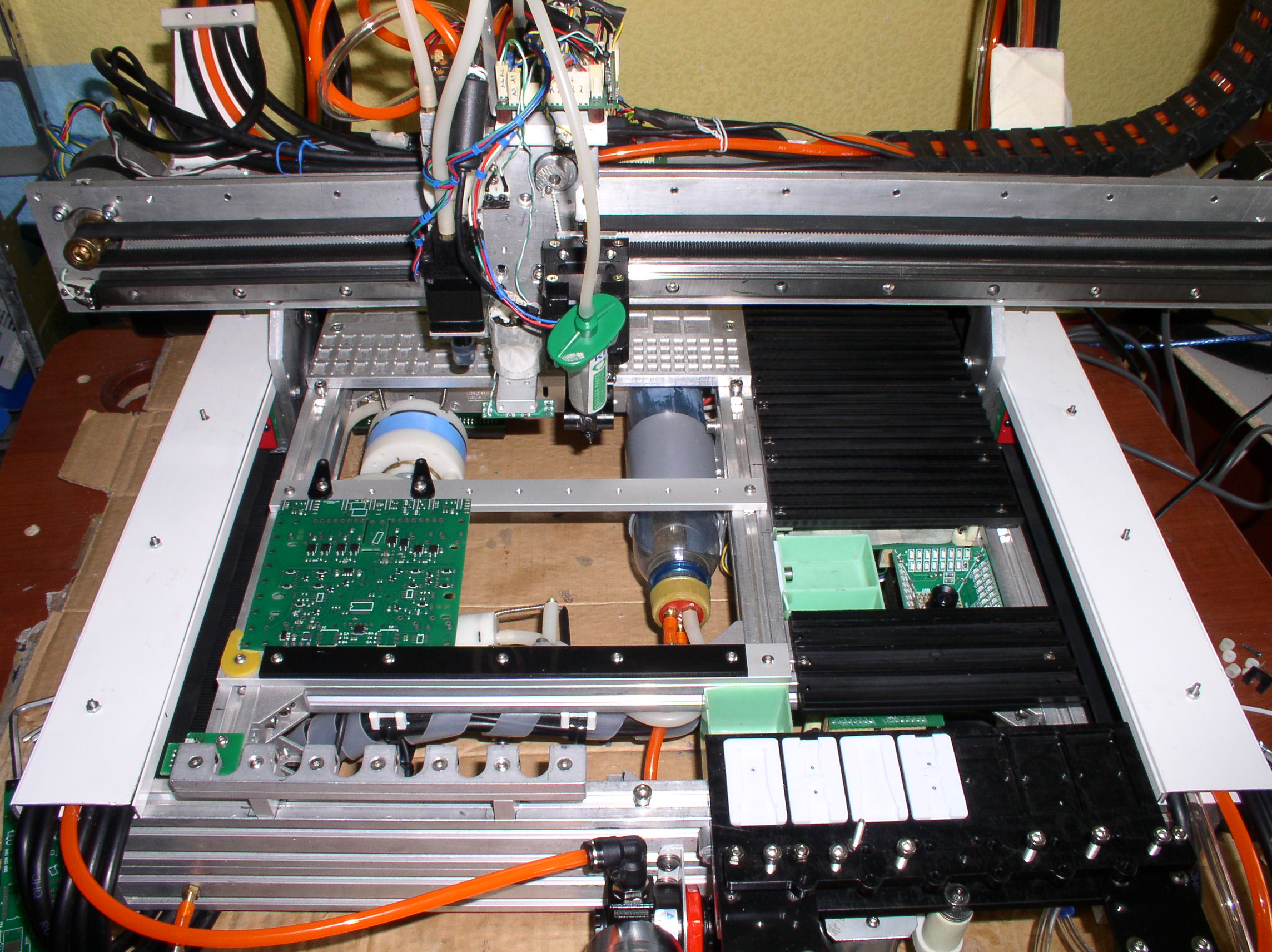 Питатели есть в планах. Не определился в данный момент времени с питателями, управление вакуум насоса, дозатором паяльной пасты и возможного размещения мат. платы в раме станка.