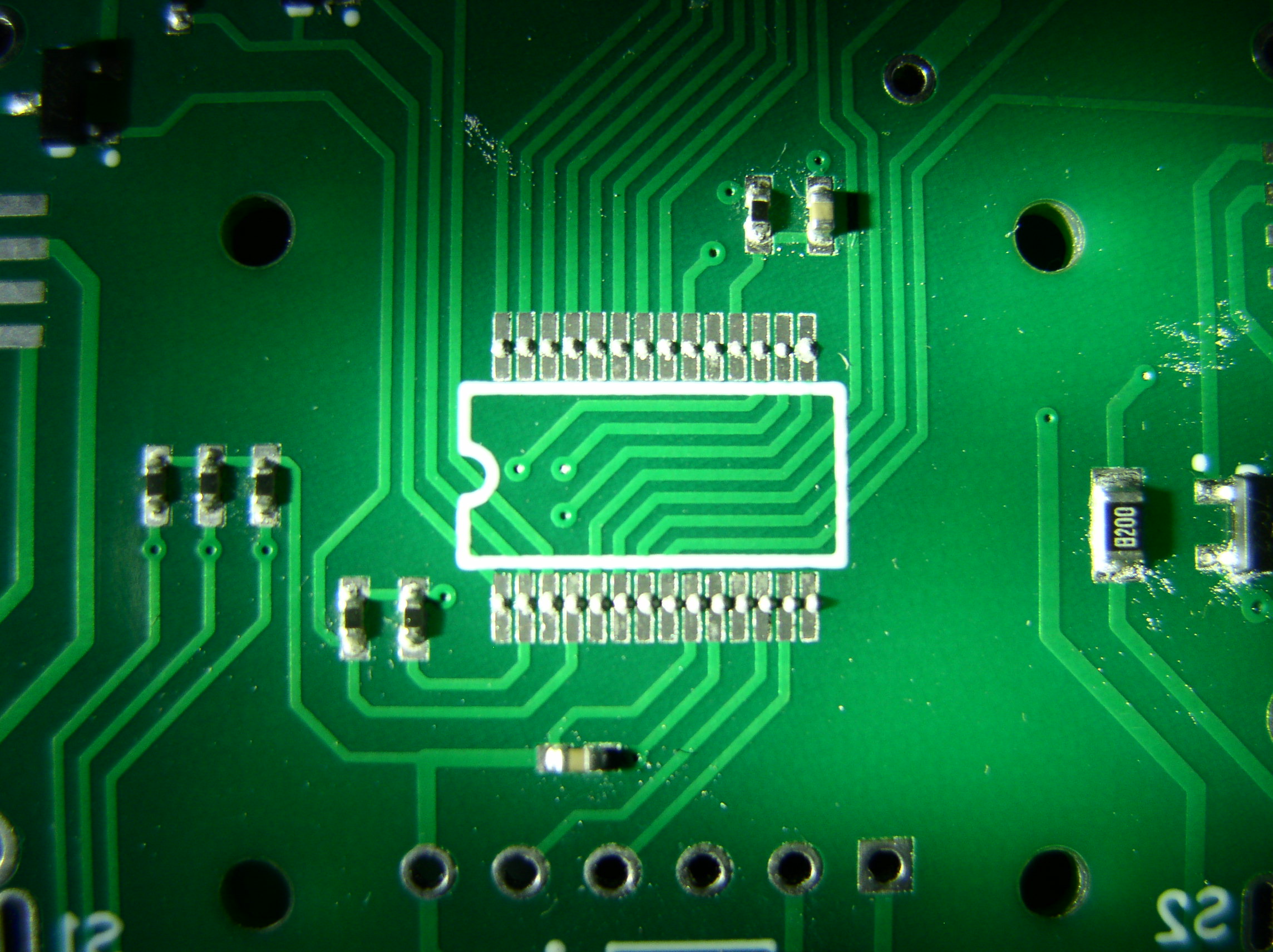 Он только капли наносит, полоски на площадке рисовать не умеет? Я к тому, что при установке чипа на капли, они расползаются в стороны и при запайке получаем много залипов ног.