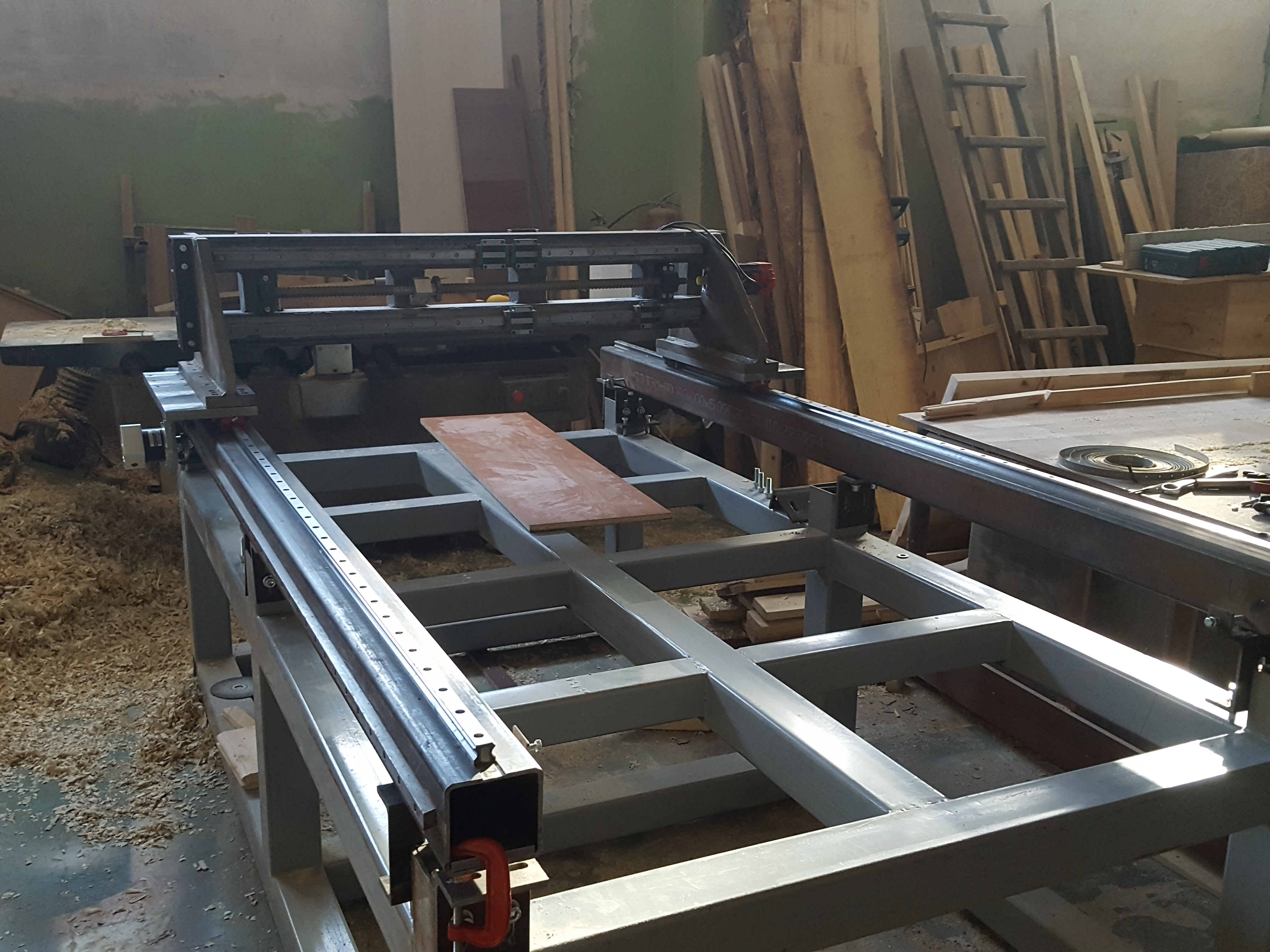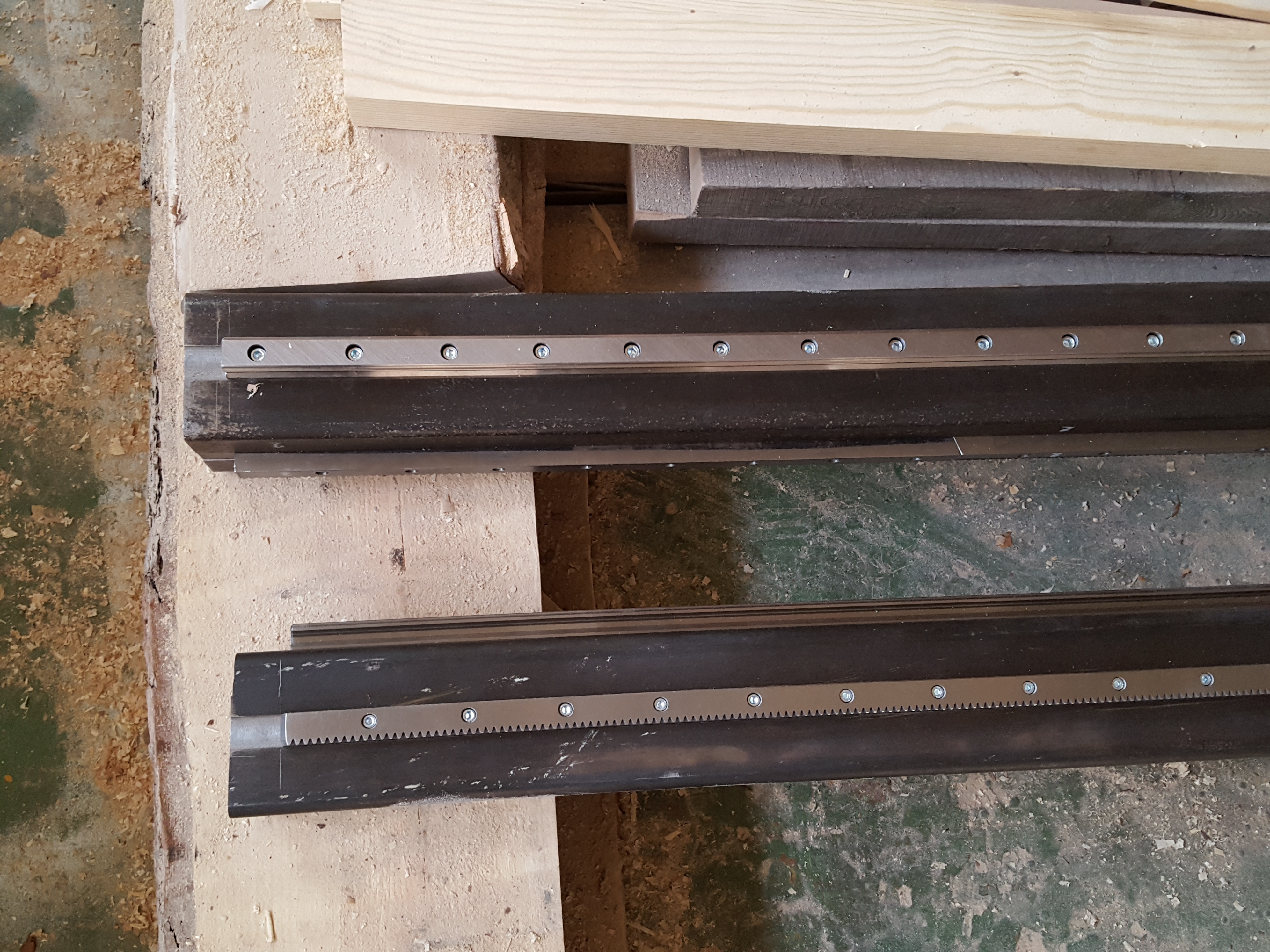Изготовил детали портала и установил рельсовые направляющие с зубчатой рейкой на ось Х. Осталось сварить раму, и начать сборку.