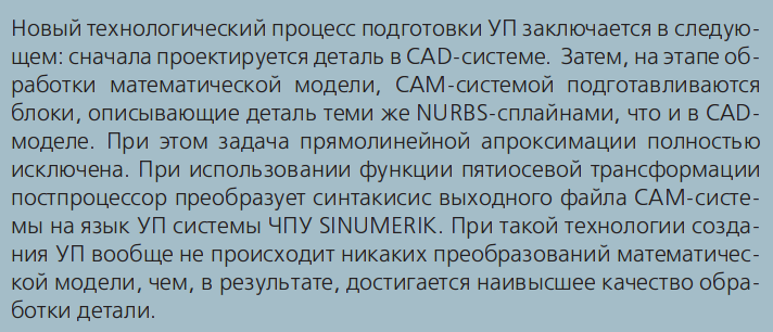 Так же(где то в другом месте читал, но ссылку потерял) эта технология позволяет все классические УП налету(т.е. в процессе выполнения) преобразовывать в сплайны(налету пишет новую УП, но не в дугах и прямых, а в сплайнах и прямых!) с заданной погрешностью.