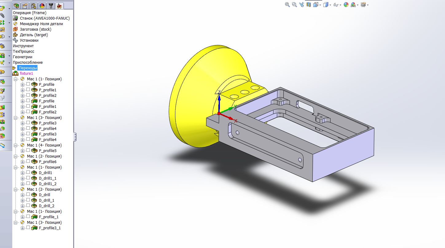 В МастерКаме это не шибко и видно. Выбирается ось какую вращать. Выбирается плоскость с какой работаешь ее обрабатываешь, потом выбираешь другую плоскость, модель не поворачивается и этого не видно, так же обрабатываешь что нужно. На верефикации это видно. Возможно ты ждешь в СолидКаме чтоб модель вращалась? Такого наверно не будет.nik1 писал(а):Ни как не могу найти как оно трансформируется