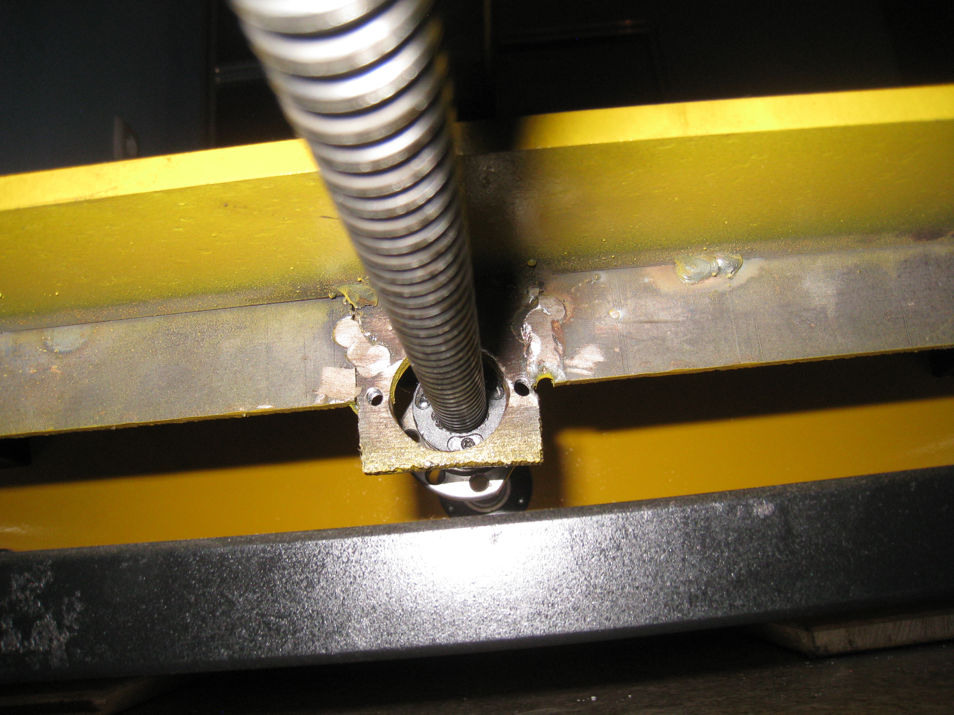 Это гайка ШВП под перемычкой портала ( я раньше писал, что портал бегает хорошо, но в крайних положениях клинит). Открутил и вытащил гайку из "крепления", смещение оси "крепления" получилось всего на какой то сантиметр в сторону от оси опорных подшипников...