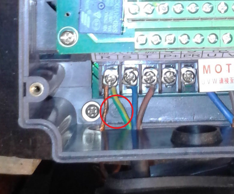 Земля не приходит с трех полюсной вилки поэтому подкинул отдельно(последнее фото). В дальнейшем постараюсь разнести блок управления от частотника или упрятать в железную коробку с перегородкой. :thinking: