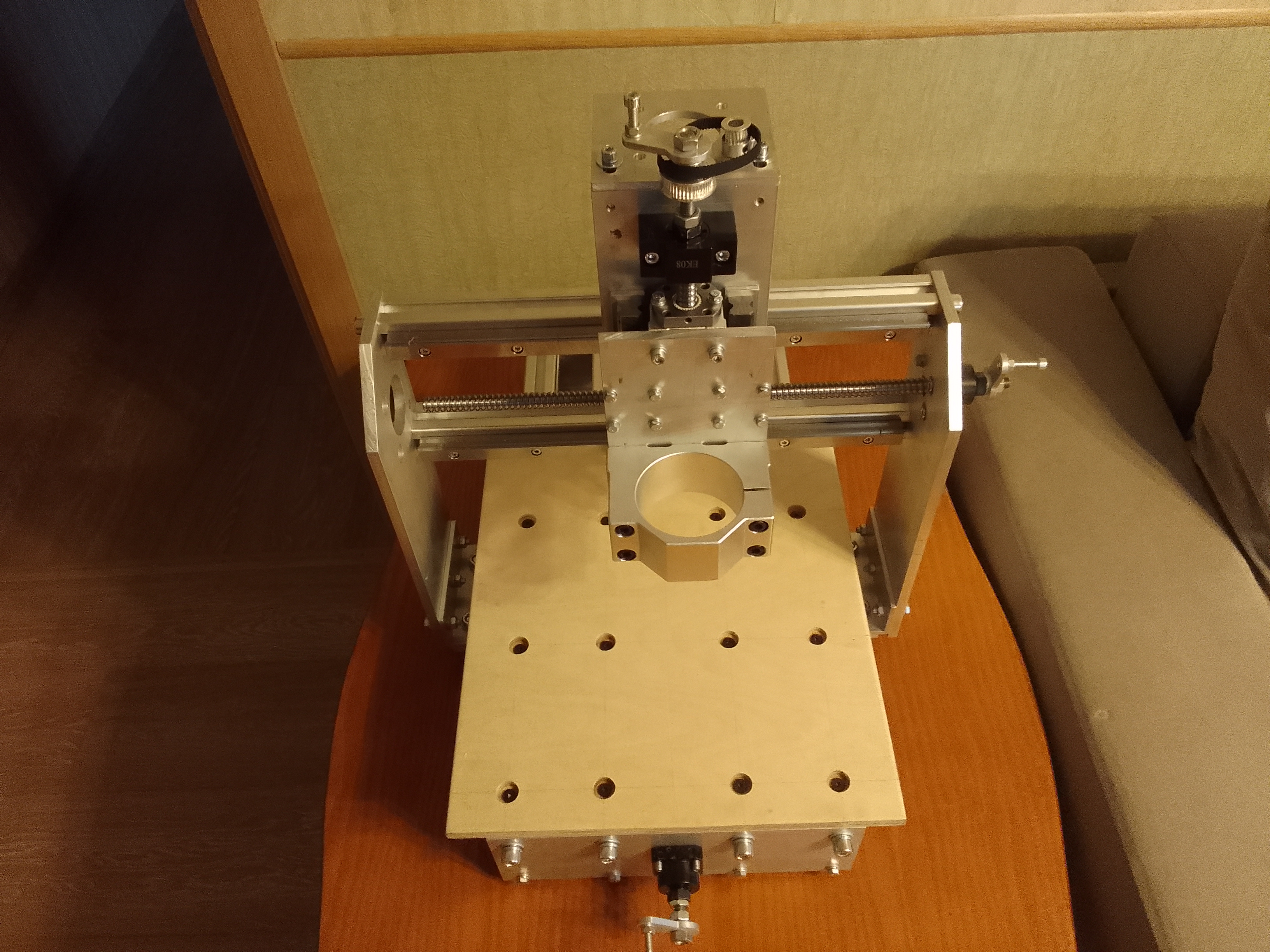 Продам КИТ настольного станка ЧПУ – внешние размеры без ШД 500х380мм, высота 430мм, рабочее поле 250х350х100мм, вес примерно 14-15кг. На всех осях стоят ШВП1204, оси Х, У и Z выполнены на 15-х рельсах, крепежные отверстия под ШД типа НЕМА23. Крепление для шпинделя диаметром 65мм (1.5квт). Станок предназначен для обработки дерева и пластмассы, а также возможна эпизодическая обработка непрочных металлов (алюминий и т.д.).