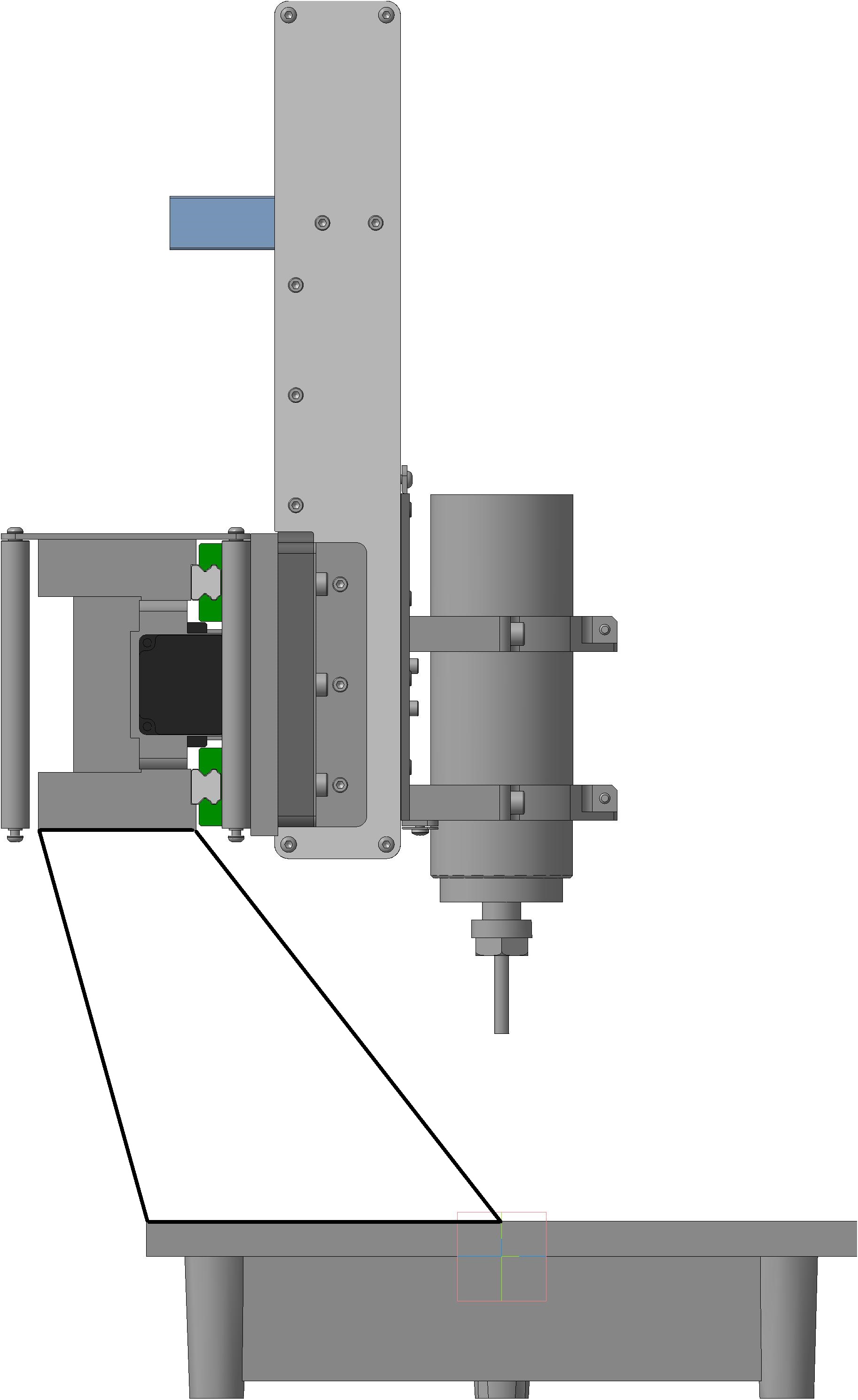 Попробовал развернуть плиту, но не уверен что это такая уж хорошая идея, если разместить шпиндель по центру плиты, а его нужно разместить именно там, портал сильно выносит за территорию плиты.