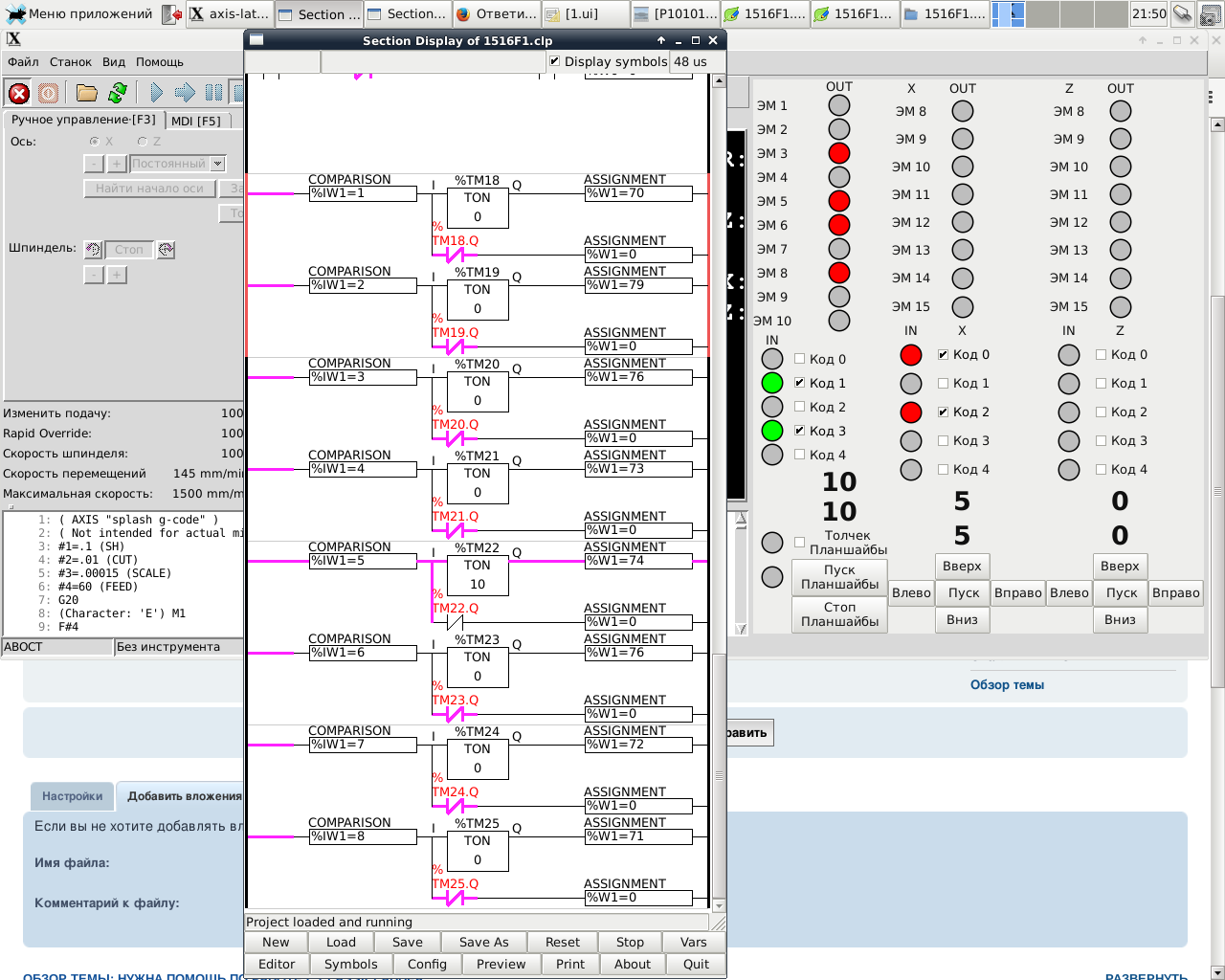 ну наверно это потому что ты тех компонентов по 3шт загрузил в хал файле,а ладдер может быть только одинВалерий писал(а):Я вот не пойму у меня всего один classicladder.0 а 1 и 2 нет.Остальные переменные все по три 0,1,2.