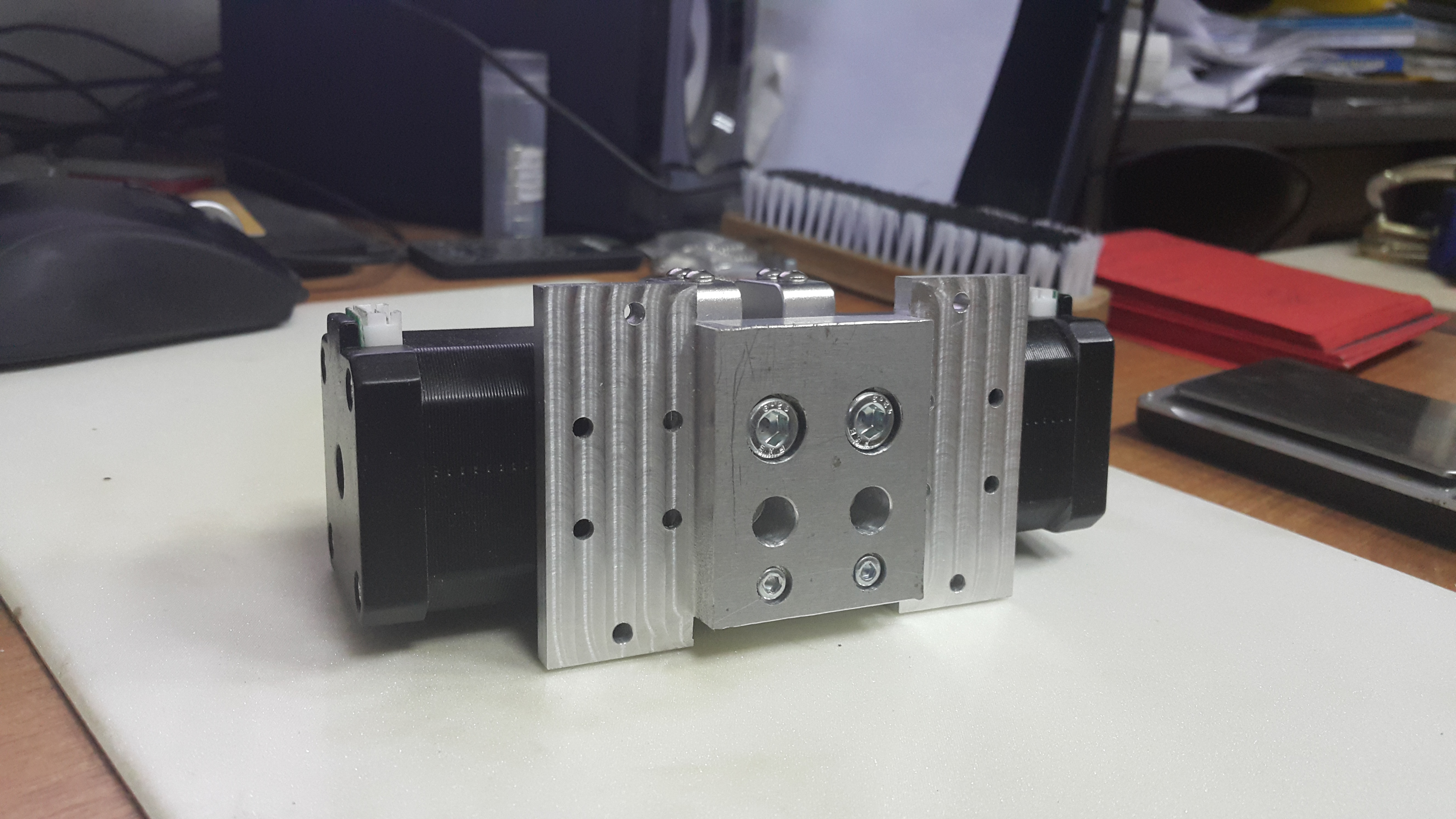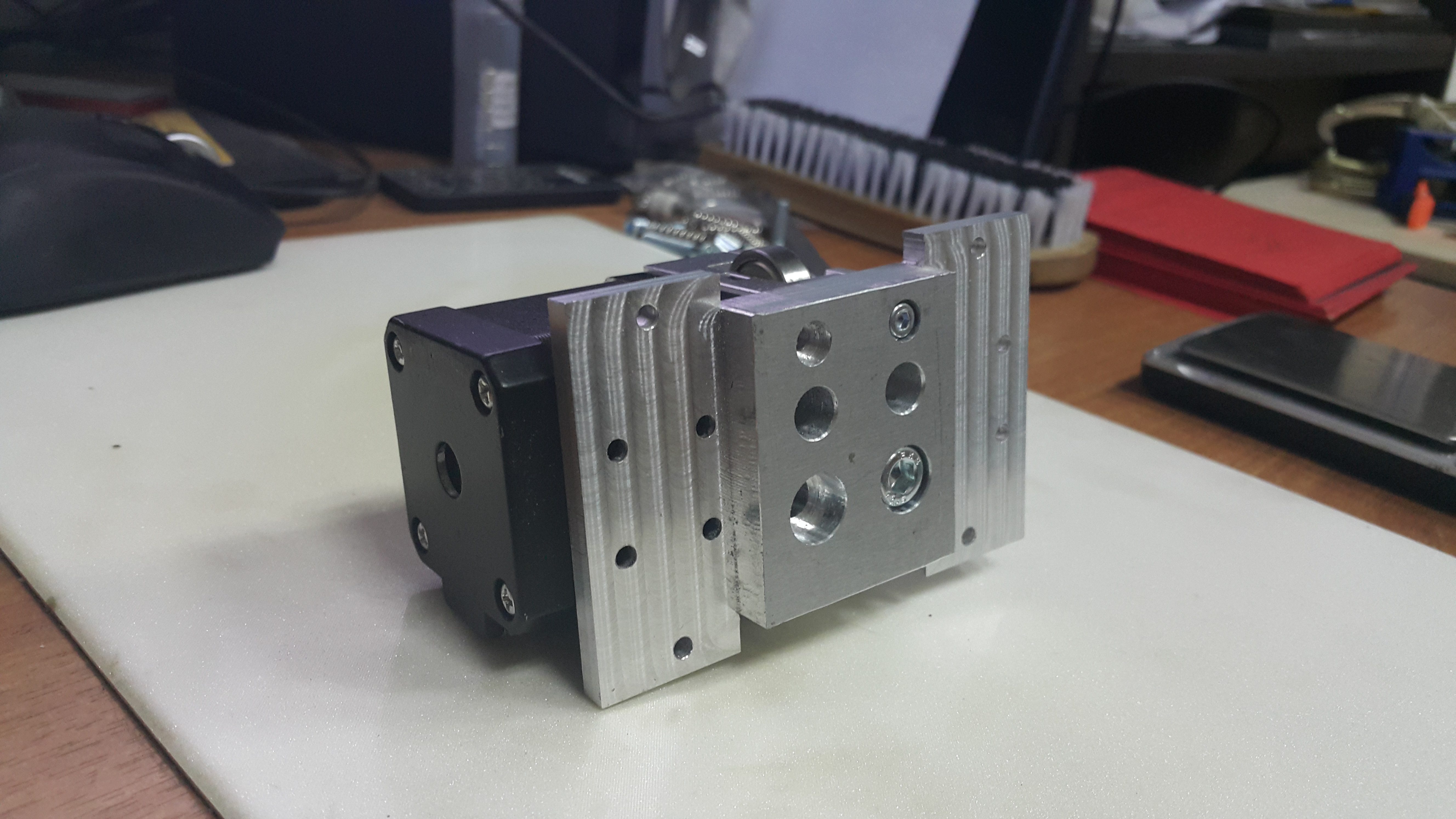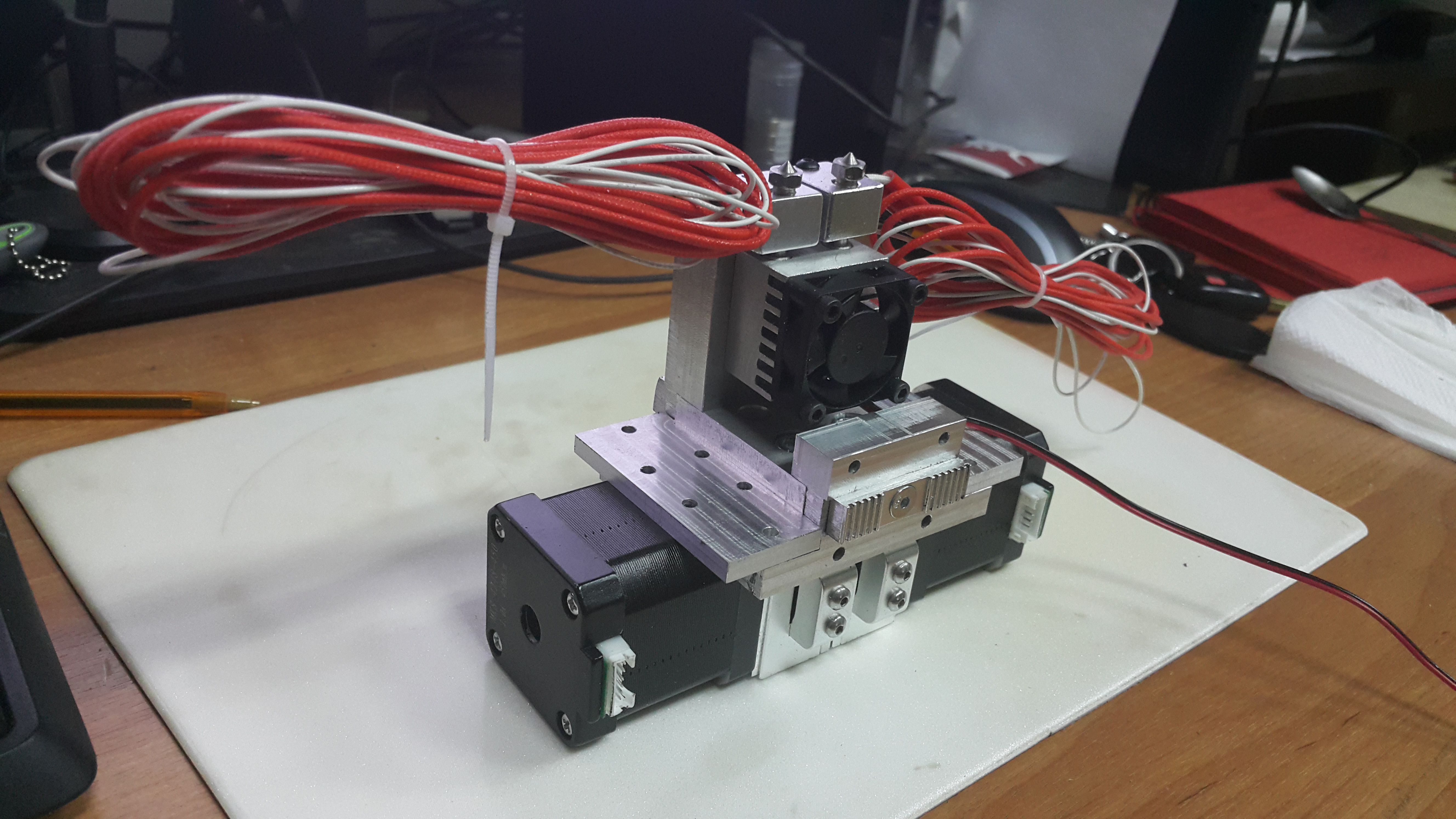 Закончил собирать каретку 3д принтера. Вес "двухголового монстрика" в полной экипировке - 1,25кг. Если оставить одну голову - 800гр.