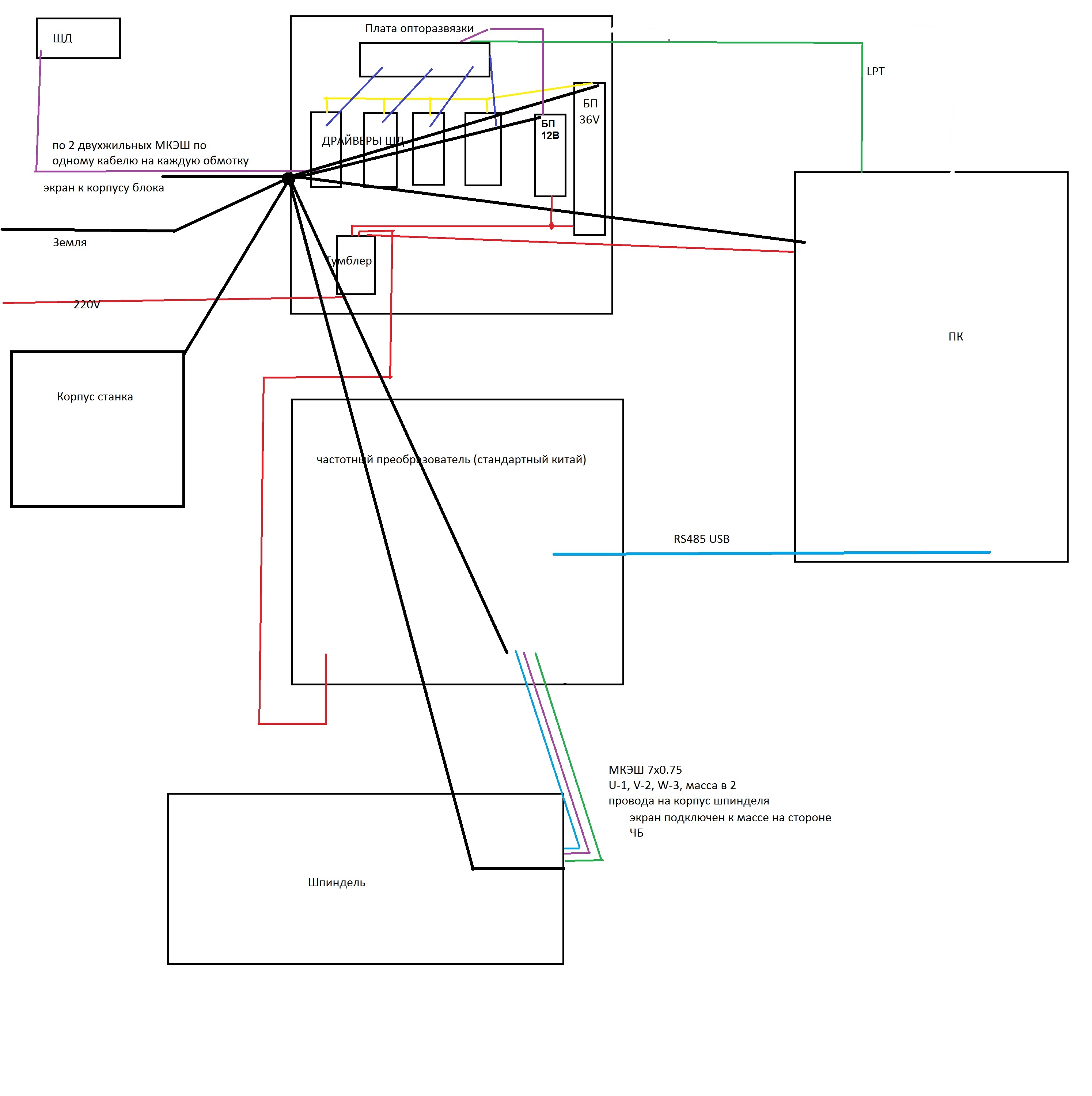 почему ШД нормально работали без шпинделя? и да был прикол при подключенных концевиках меня от них на станок долбило током и это явно было не 12В, хотя земли тогда небыло))