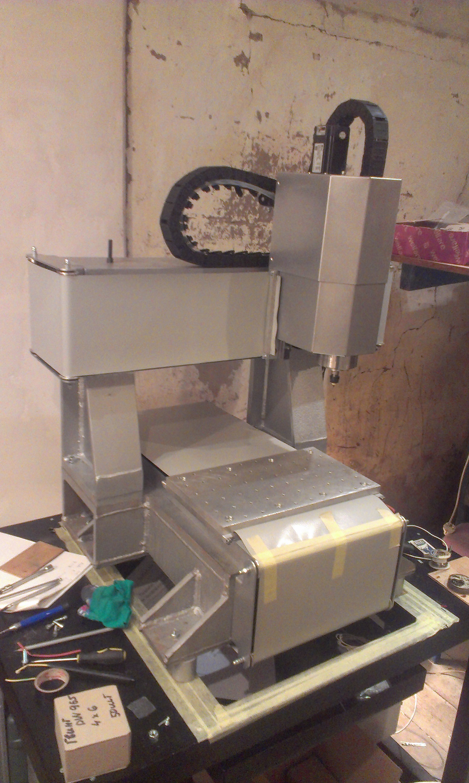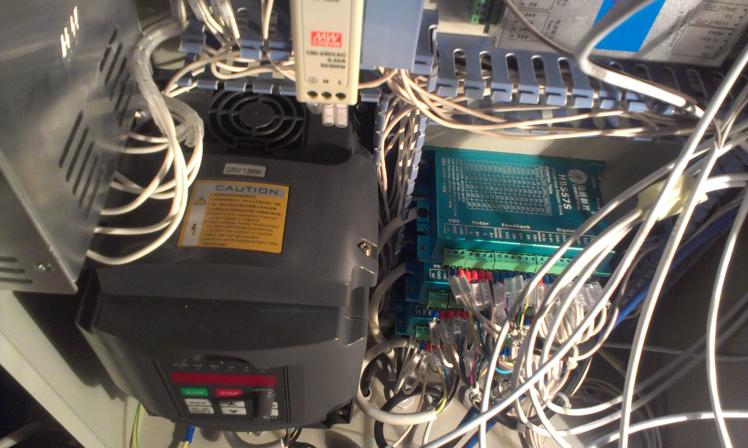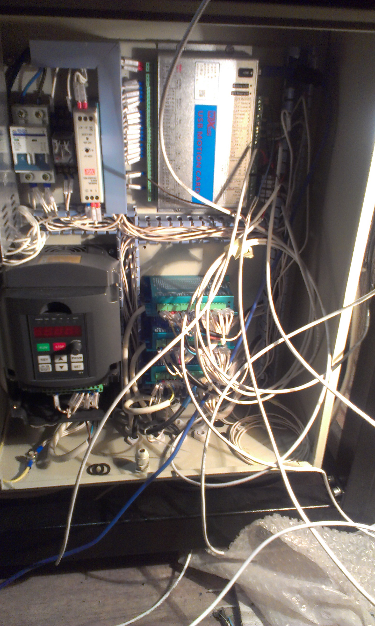 Шкаф еще не закончен, для перевозки станка на постоянное место жительства шкаф нужно будет полностью отсоединить. Поэтому пока такая путанка.