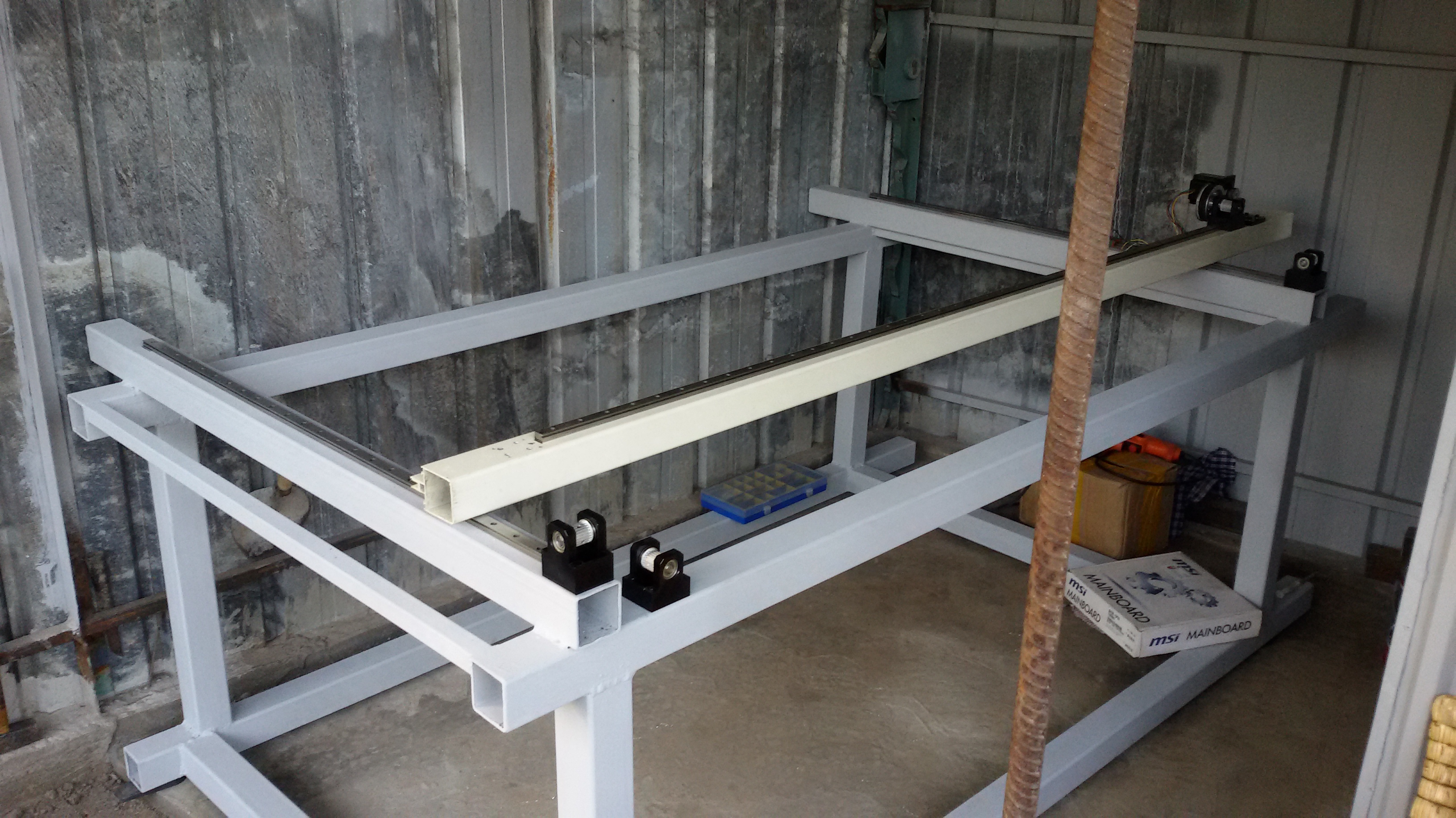для транспортировки есть, но не из прям двух частей рамы (как в Re: ЛАЗЕР на РОЛИКАХ 1550х1000 #62 ), а отдельно нижнюю подставку (стол и вытяжка) и отдельно механику.