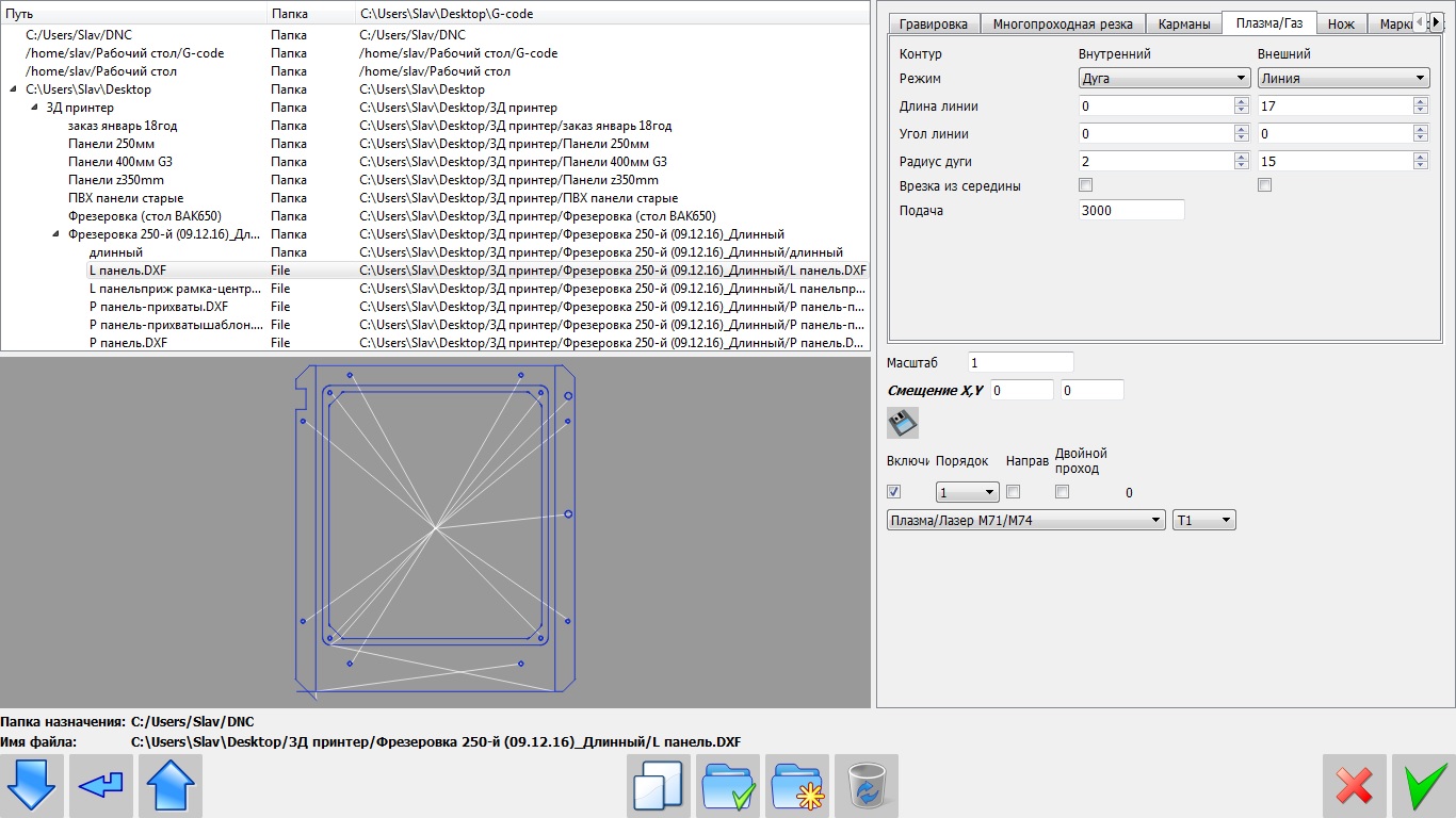 выбираешь слева нужный тебе dxf файл , затем справа-вверху нужный режим обработки и прочее бла-бла........... по итогу УП сгенерируется сама..........