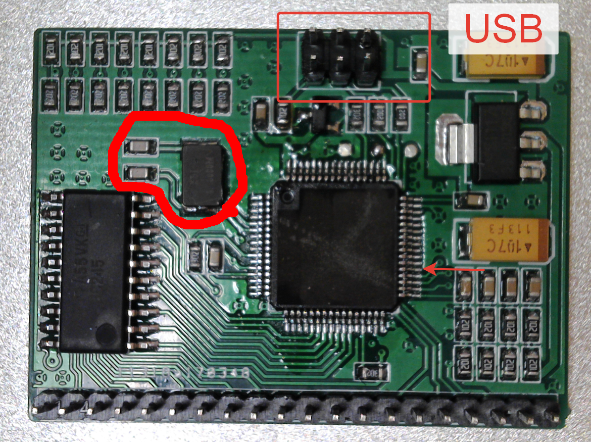 Зря смущает, вот он Даже если бы его не было и тактирование было от внутреннего источника, то чтобы была крайняя нестабильность, потребовалось бы менять температуру в довольно широких пределах, ну порядка -10...+50 градусов. Я про то, что "крайне не стабилен" - уж слишком крайние словаSmith2007 писал(а):Смущает, что на плате нет кварцевого резонатора. Значит STM32 тактируется от внутреннего источника. А он крайне не стабилен и от температуры может съезжать.