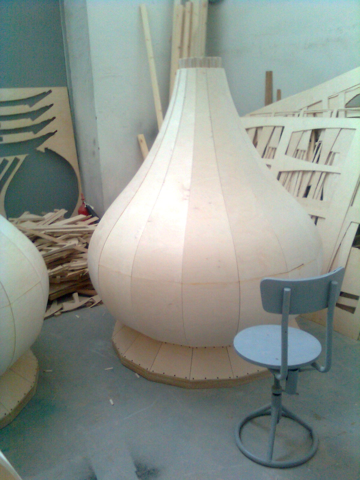 фанера 20-ка и 3-ка . потом прогрунтована в несколько слоев. потом покрыта медью тонкой. потом я еще делал из мдф оснастку для изготовления шпиля. потом ето благополучно уехало в какую то церковь вроде в рязанскую губернию.