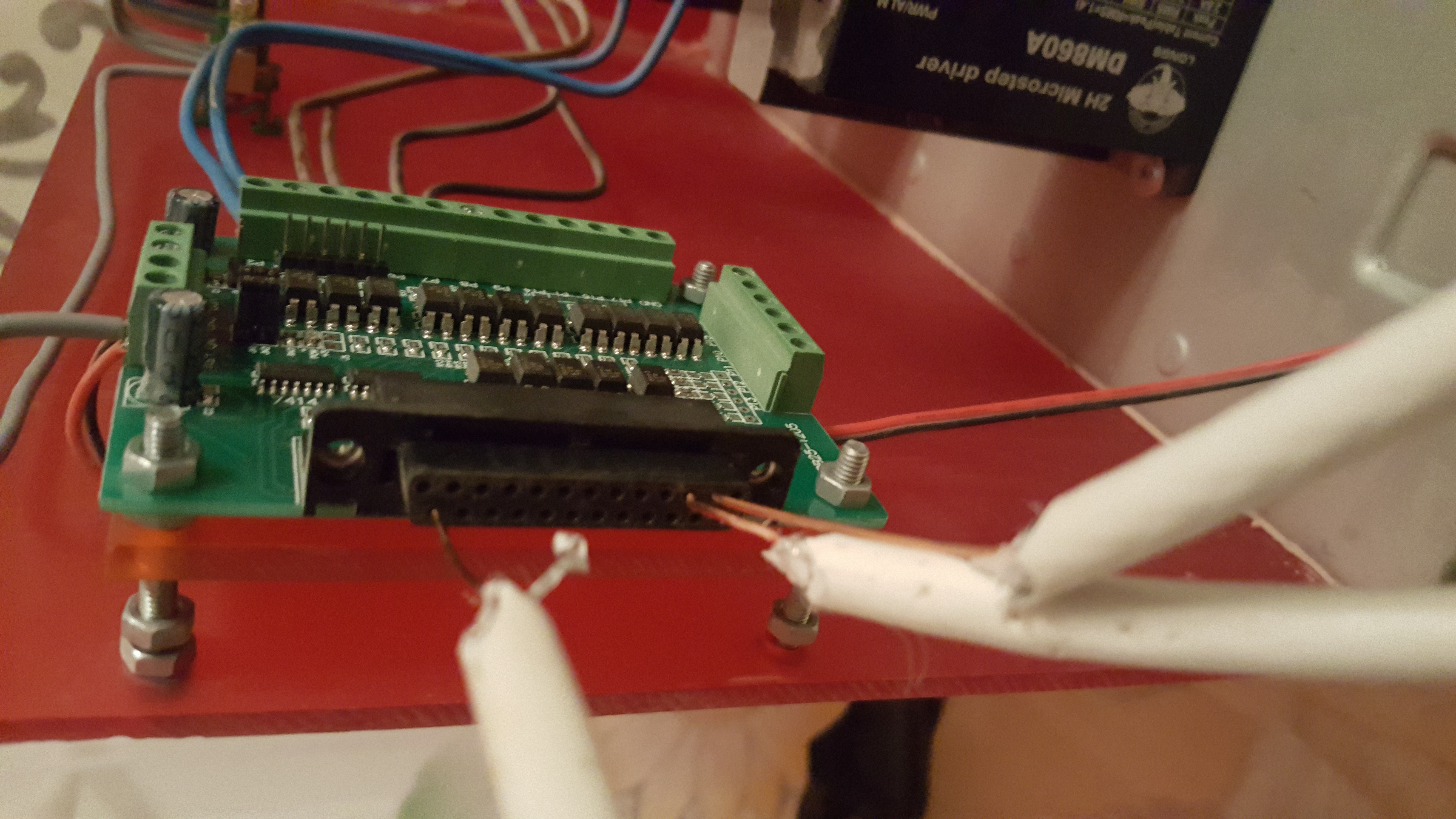 Зачем этот провод? В схеме его нет. Здесь ничего не появляется. С этой стороны можно только на второй пин +5 вольт потыкать, двигатель должен при каждом тыке делать шаг. Тут вроде правильно. На правой проволоке (из тех что рядом стоят) должен быть степ оси X, на левом дир оси X. Надо в маче пошевелить осью X и вольтметром отлавливать 5 вольт. Один щуп на одинокую проволочку, второй на одну из рядом стоящих проволочек.tsups писал(а):tsups
