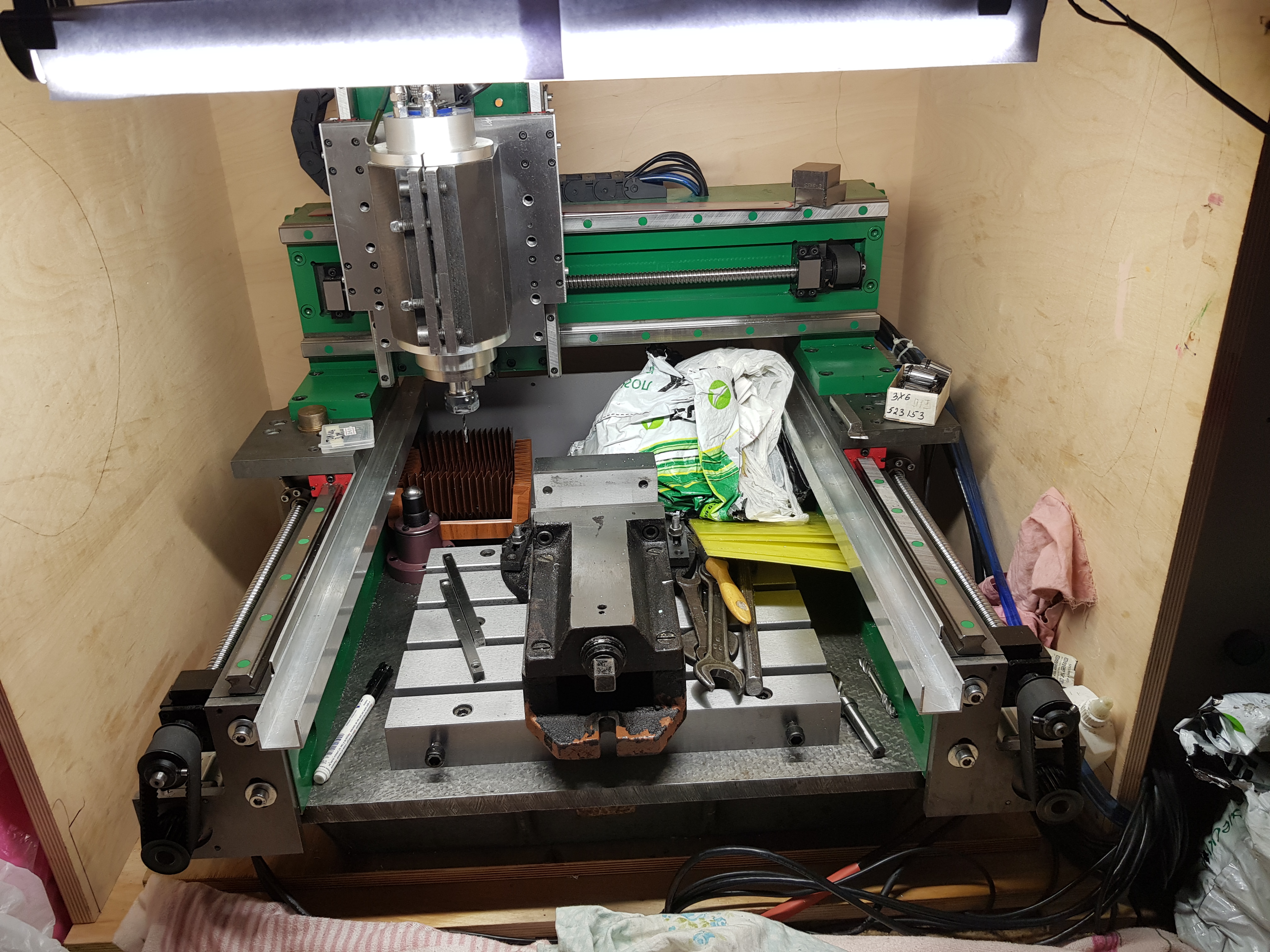 Шпиндель сеичас стоит на 3.2kw водяного охлаждения на 24000 об. Сервы по всем осям minas a5 на 400w. Управление Mycnc контроллер ET7