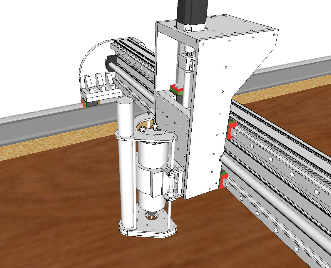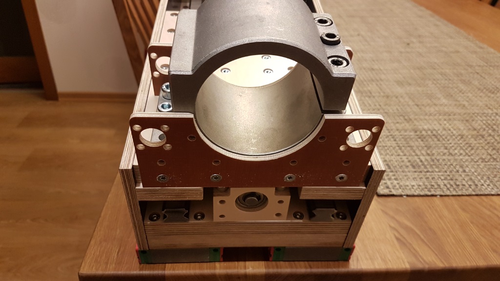 Я вот думаю вы такое нагромождение делаете всего для аспирации. Может тогда сделать сразу хомуты для шпинделя под эту всю конструкцию - будет цельный механизм без лишних креплений.