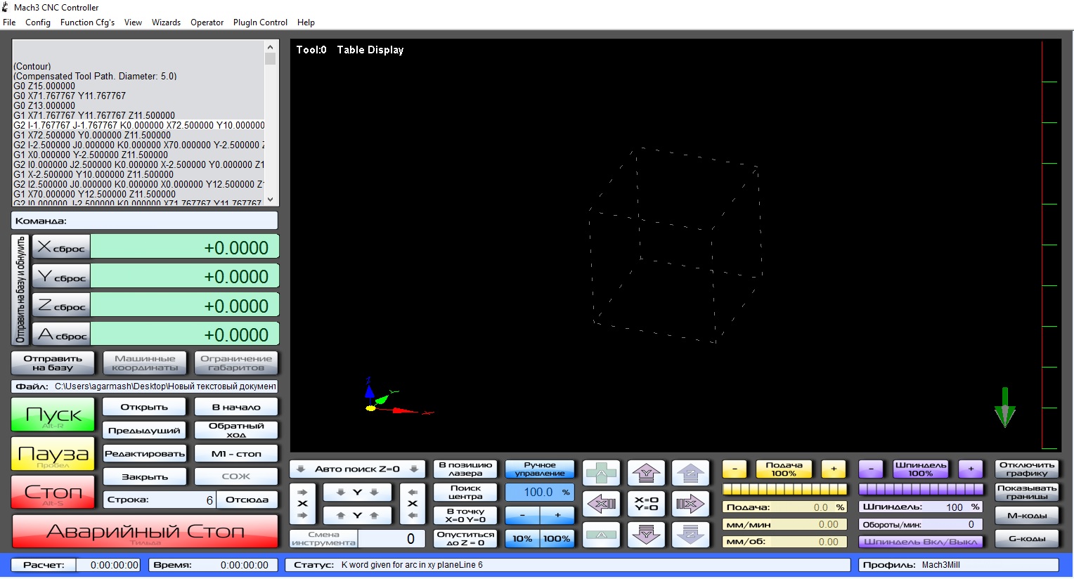 Как тут видно, первое это лишний "символ К" и второе это задом наперёд всё прописано. Первым делом попробовал удалить везде K0.000000 и запустить мач и он перестал ругаться, на этом шаге пока проблема решена походу :good: . Жаль что следующий поход к станку только через две недели.