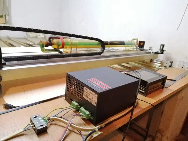 Станок китайский , правда не на руиде, а на М2 нано, но мне пофик. Станок почти новый, но бизнес видимо не пошёл, зеркала и линзу угадили почистить не умели, так и забросили.