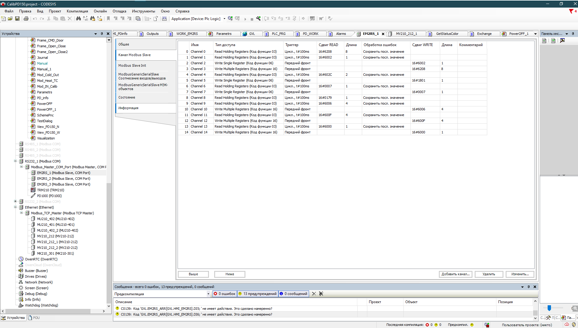 И встал я на создании каналов Modbus Slave для чтения и записи в/из драйвера...